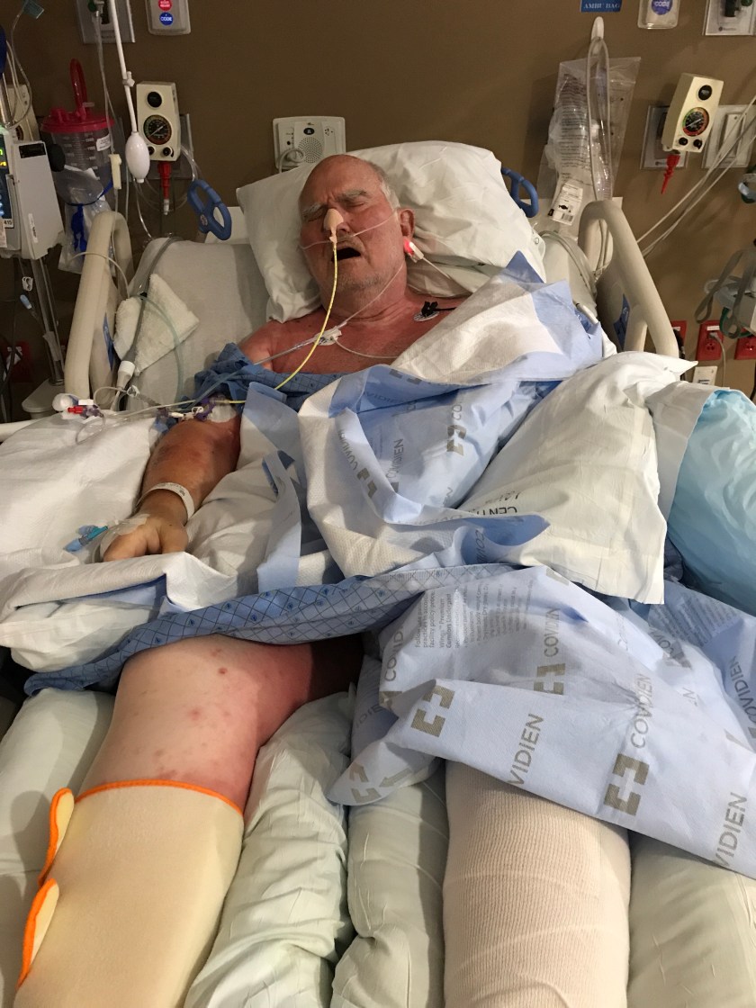 It started as a simple infection in his foot that didn’t get properly treated. On Thursday, 20 July, he was diagnosed as septic at the care center and immediately sent to the hospital. I was in Logan seeing operas with Steve. We contemplated skipping Yellowstone and Tetons altogether but my family encouraged me to go. While away, a surgeon amputated part of my dad’s foot and felt confident that he had gotten all the infection.