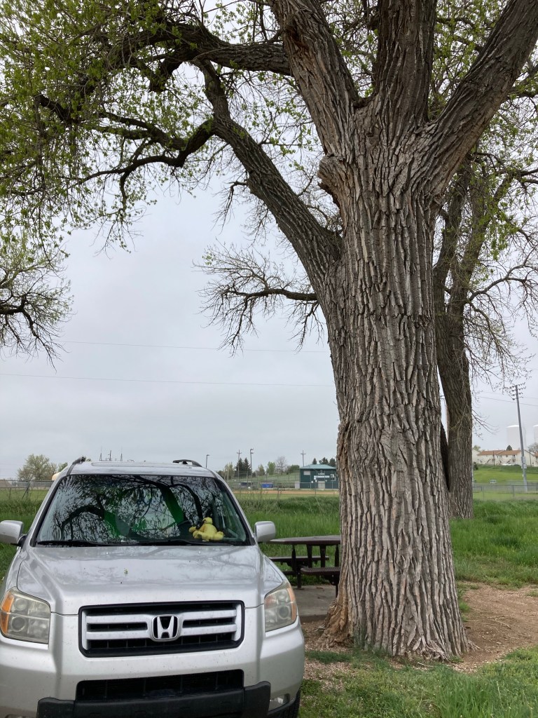 Dinner at Cavalryman Steakhouse in Laramie…trout, Cajun zucchini, and berry cobbler 🙂 Ordered takeout and ate it in the parking lot on my lounge chair. 21 May 625 miles Stayed at Lewis Park campground (free!) in Wheatland Wyoming