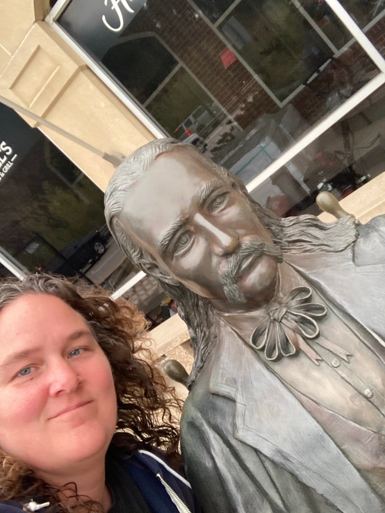 Ducked back into Wyoming to hit Devils Tower NM…saw some bison and pronghorn. The wind circle sculpture was really neat. After a quick shower stop at Spearfish campground where I was planning to stay, I pushed on so that I could be at wind cave early enough to get a cave tour. Briefly stopped in Deadwood for some pub fish and a quick selfie with Wild Bill. Crowded tourist trap honestly. 22 May 495 miles Stayed at Oreville campground. Pulled in after dark but the shot the next morning proved that it’s s pretty spot 🙂