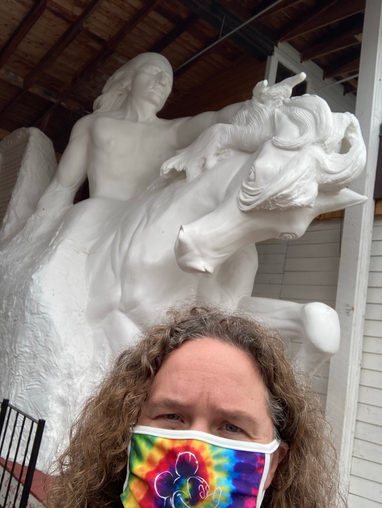 Wind Cave NP…waited for 2 hours in line but I was able to get a spot on a tour. Wind cave is named for the amazing airflow throughout. This is the natural openingCrazy Horse Memorial was blanketed in fog so I had to settle for posing with the model