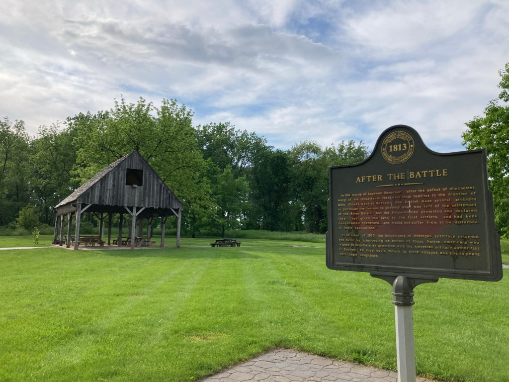 Cuyahoga National Park…it poured when I first got there. I did two conference presentations while there…the first one on the side of the road and the second (after a slight reprimand) in a public library. And parts of the park were closed so the whole experience was a bit taintedFirst time in Michigan…my 46th State!River Raisin National Battlefield