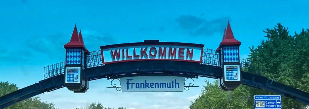 26 May 427 miles Michigan state Capitol. Stayed in Lansing at Hampton. I had planned to skip the northern part of the “glove” and head directly to Sleeping Bear Dunes but I decided to try for Mackinac Island so I headed north. On a whim I stopped at this German-inspired town.