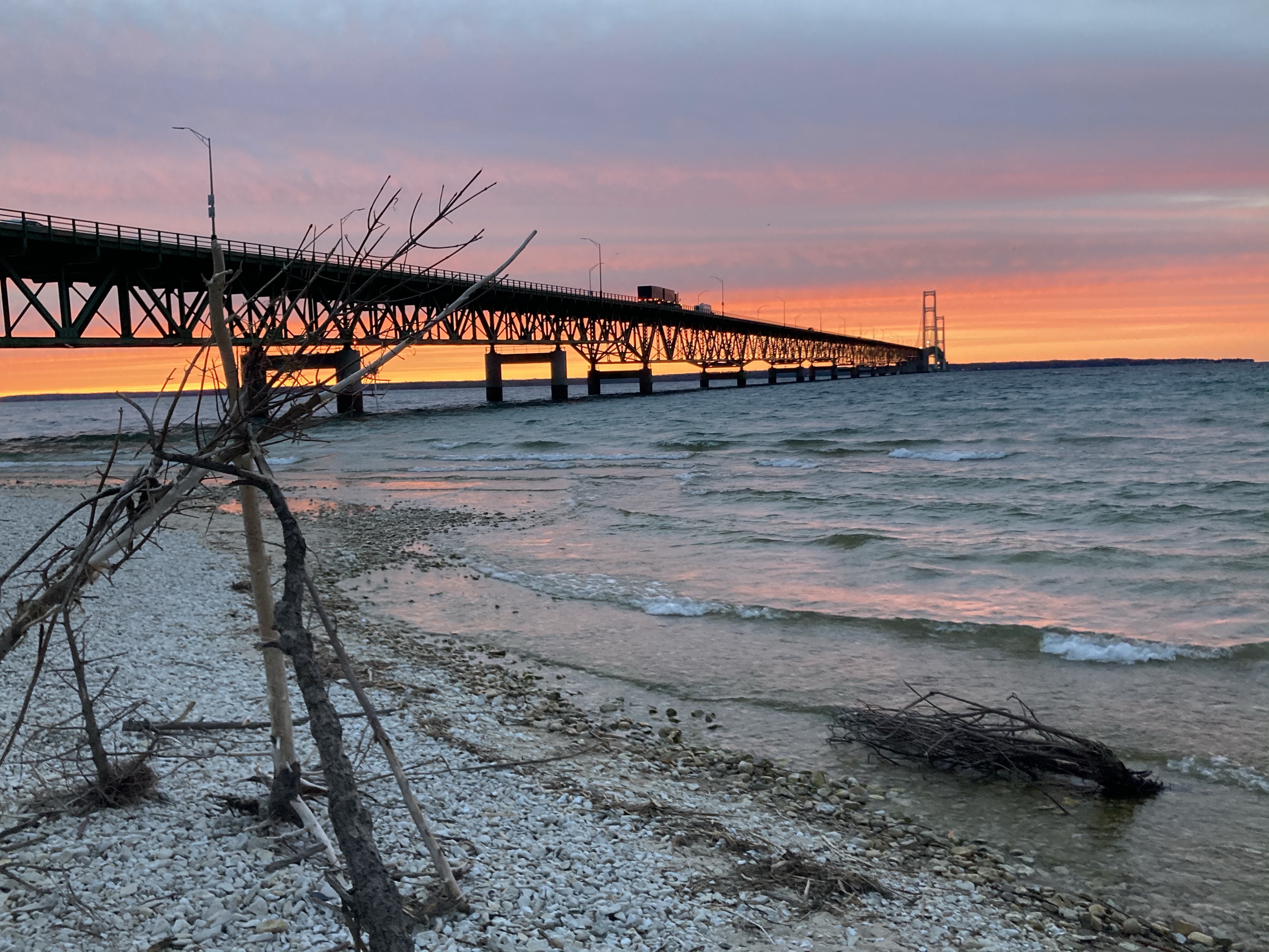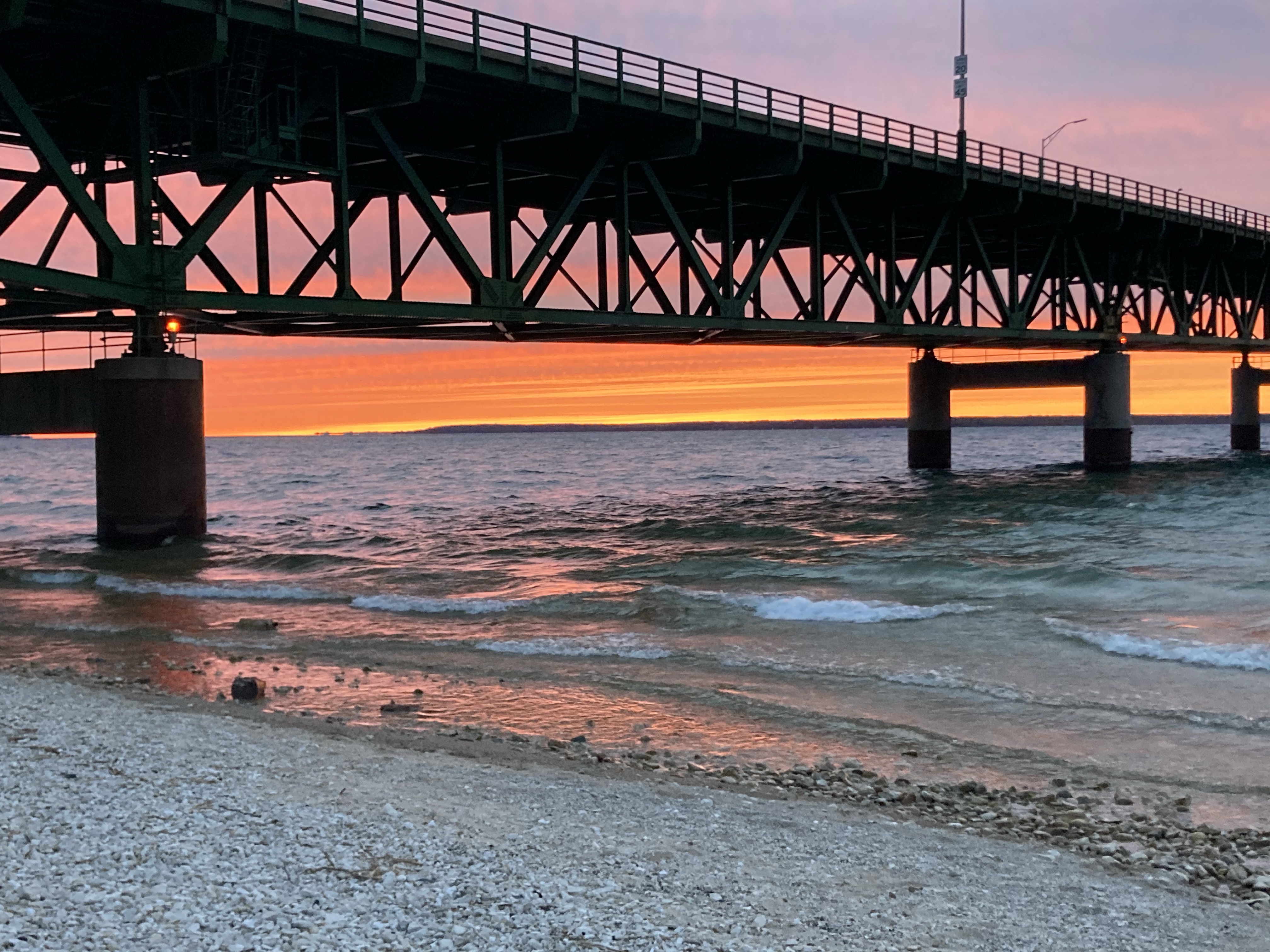 Crossed the Mackinac Bridge into St Ignace hoping to find a rest stop to stay the night (I got a ferry ticket for the next morning so I needed to be somewhere close). Beautiful rest stops with awesome views but no overnight stays allowed 😦 so I headed back over the bridge and got some amazing sunset shots.