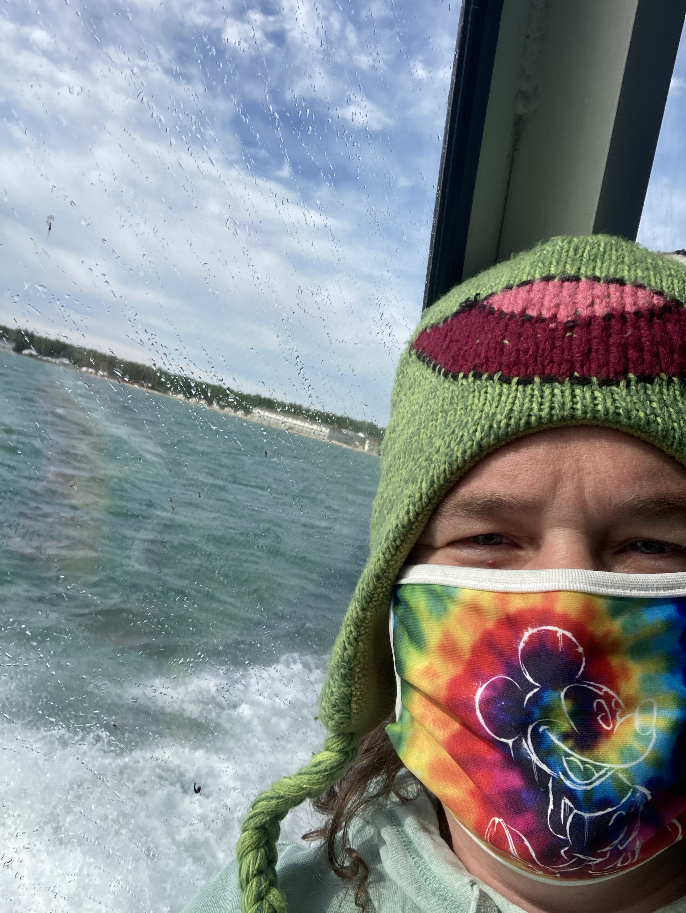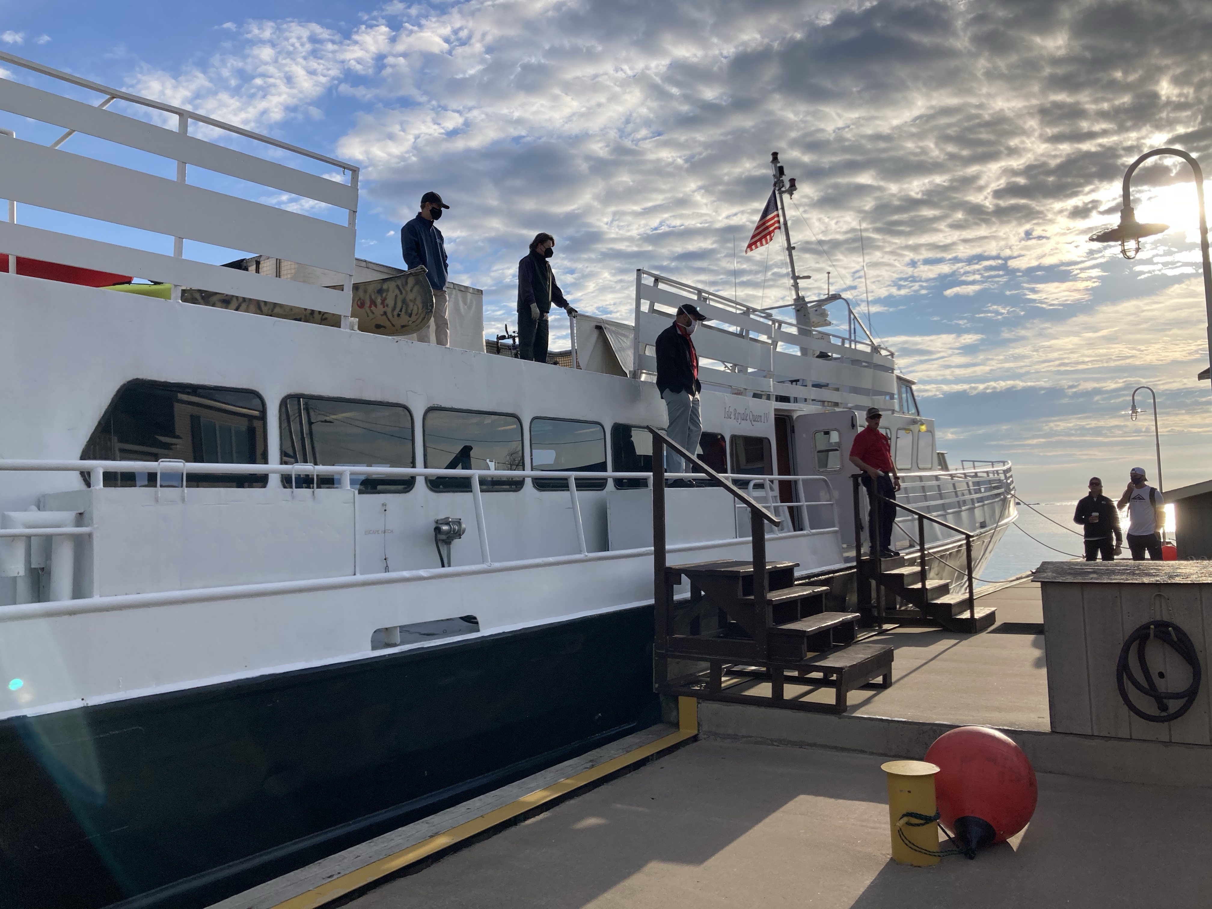 3 1/2 hour ferry ride across Lake Superior. Talked to a couple from Illinois and a guy who was biking and hiking across the US. Their distancing signs were pretty funny!