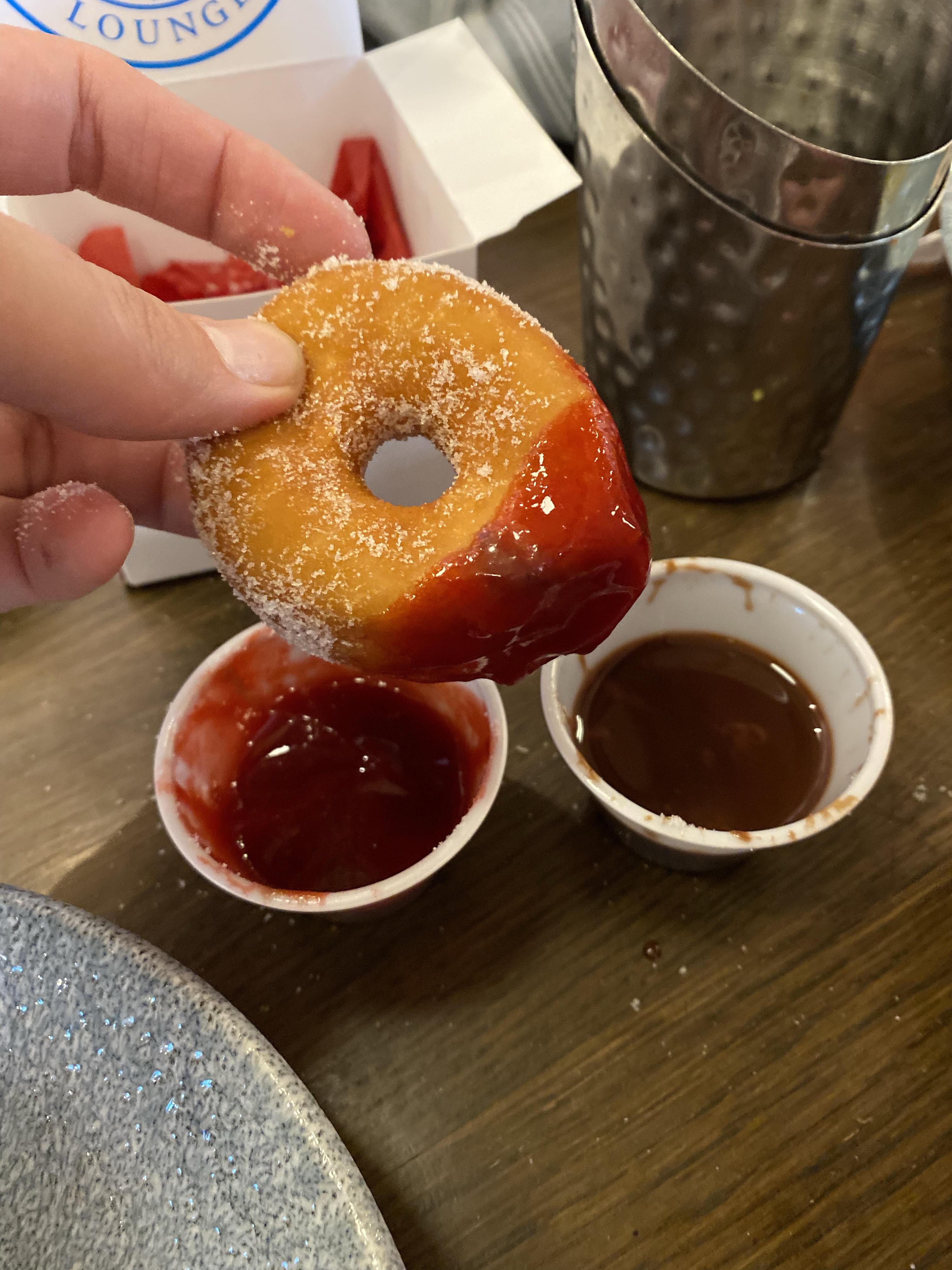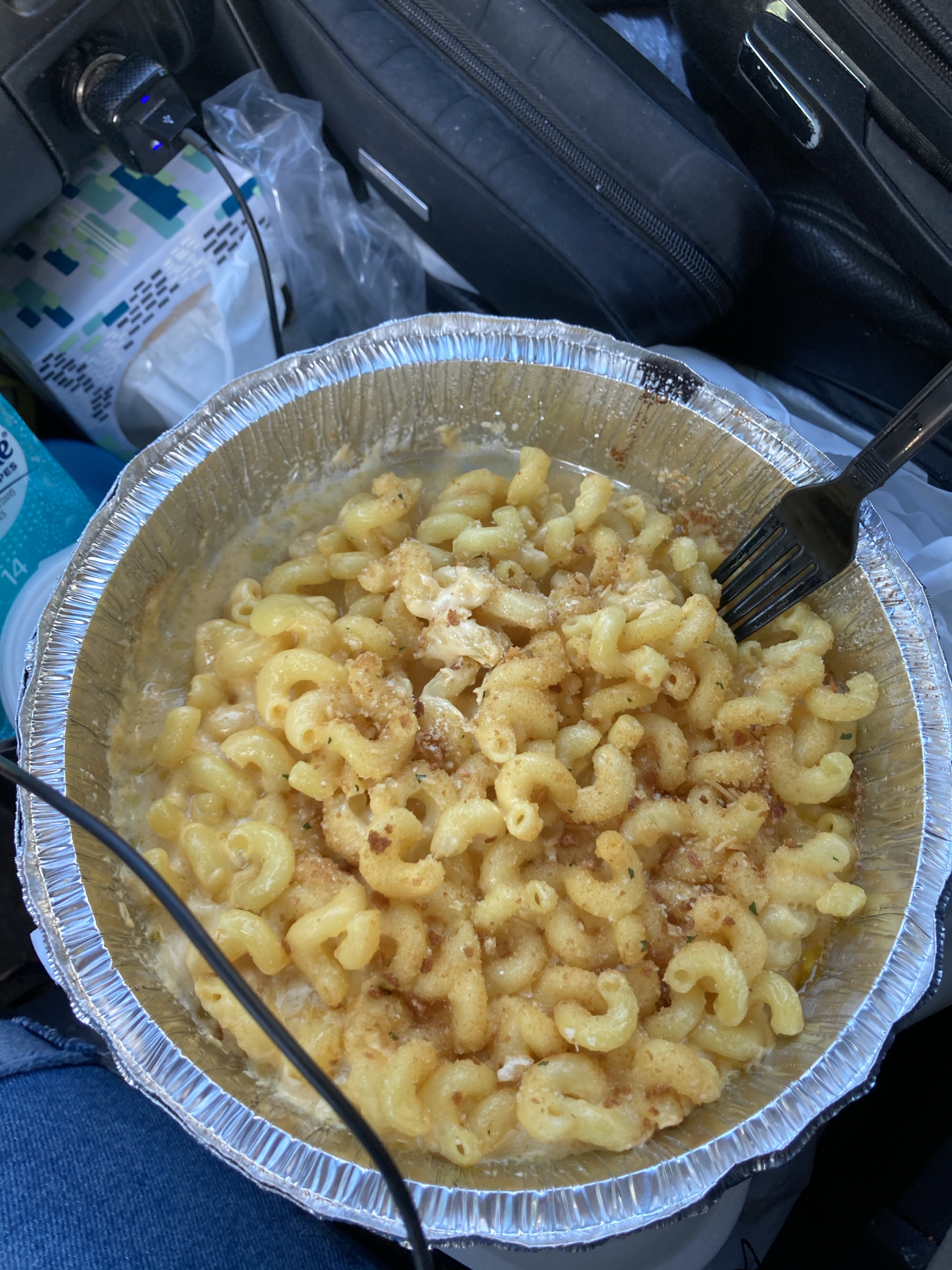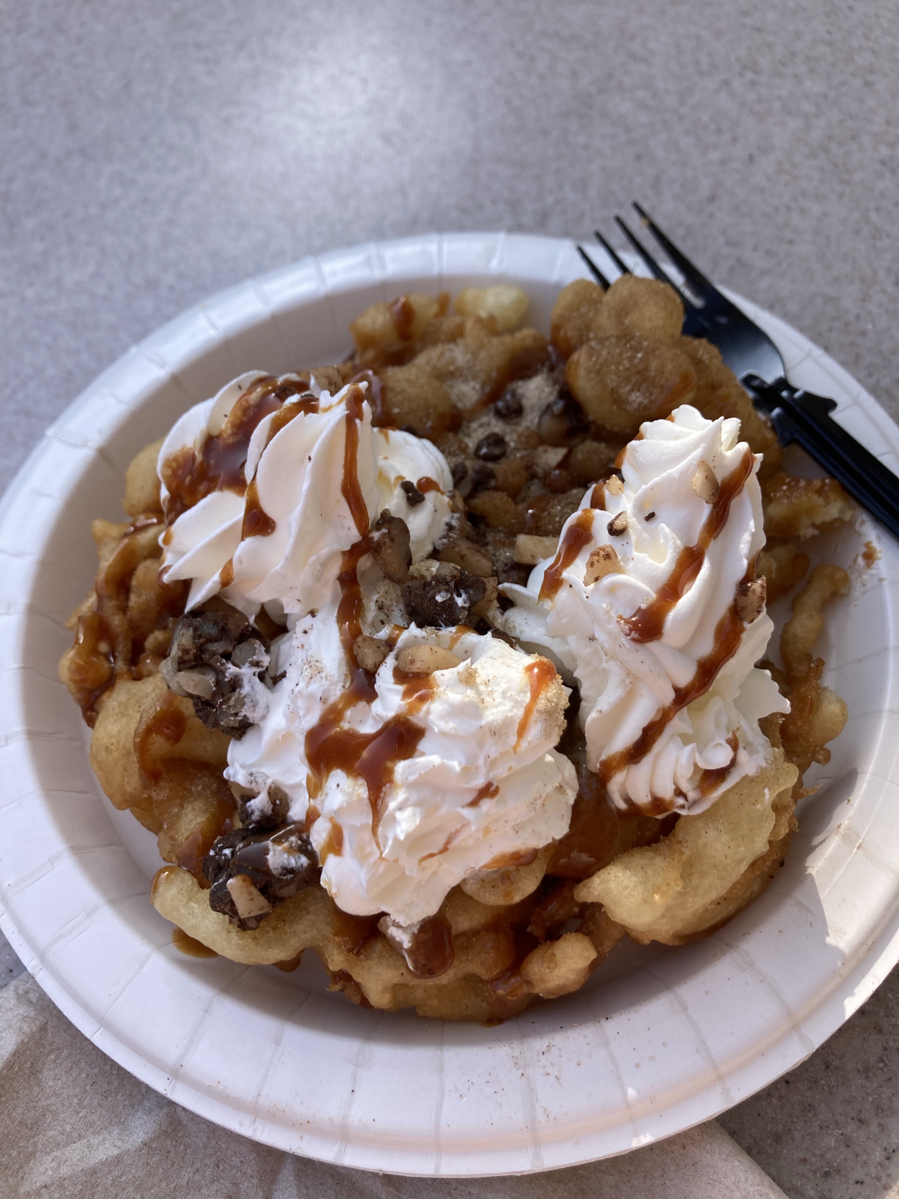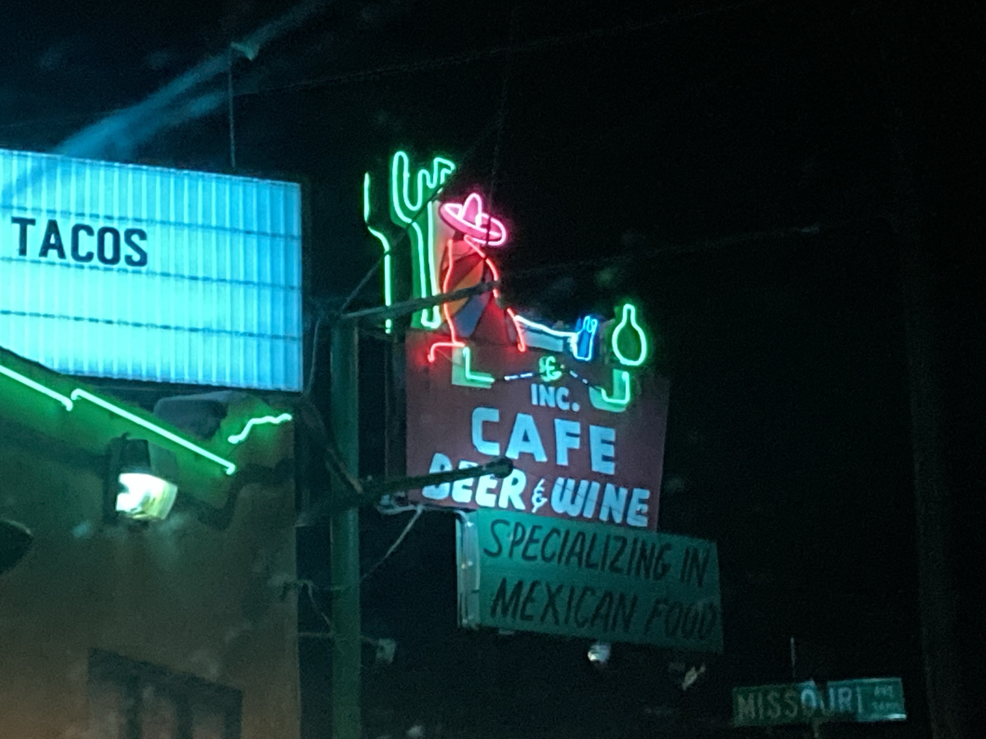 Yummy fry bread takeout from a pretty sketch cafe. I ate it in a well-lit KFC parking lot. Steve can see my location and he texted incredulously that I was eating there. 🙂