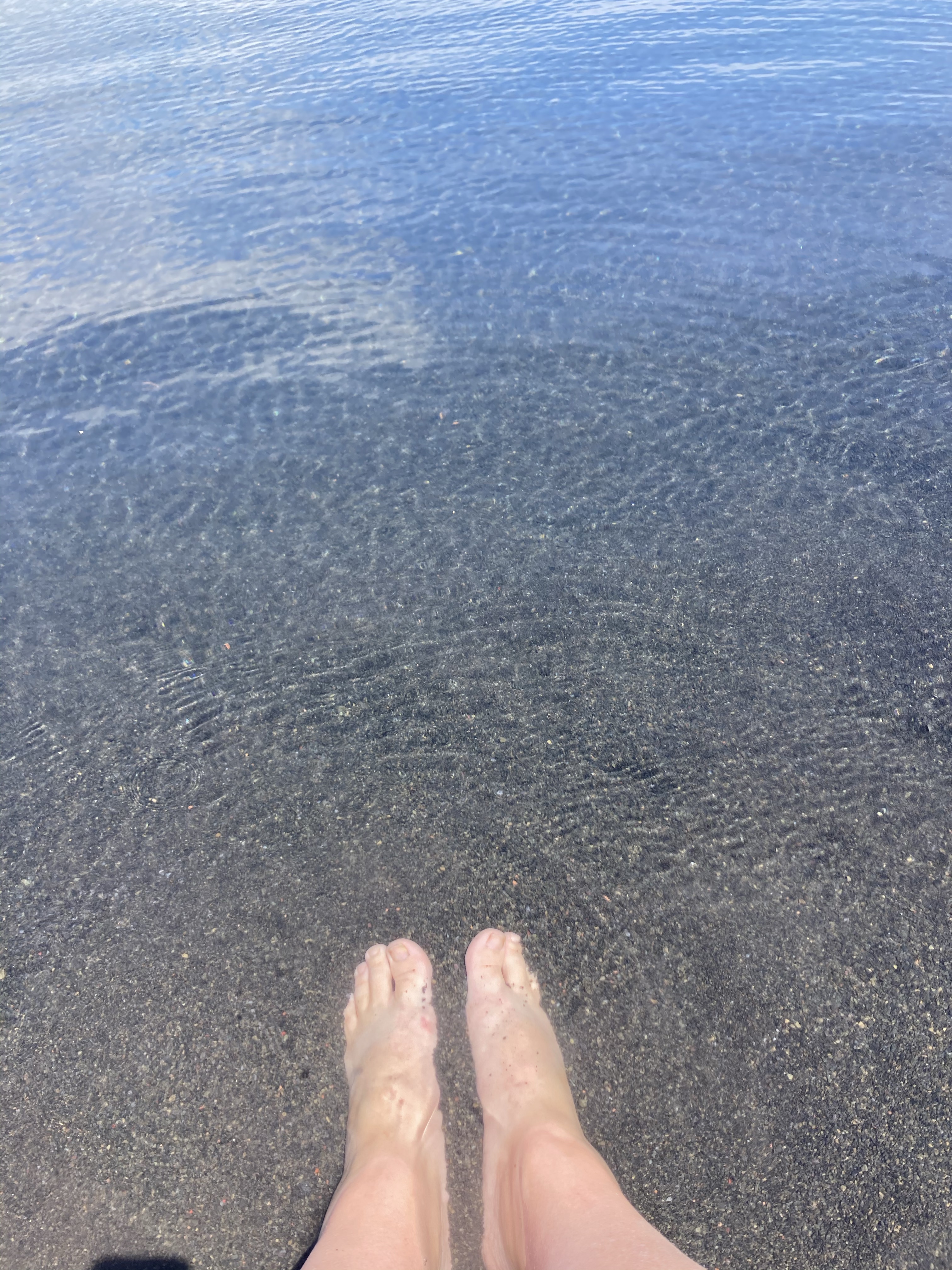 Braked at a turnoff for a black sand beach and waded around thinking it wasn’t really black just dark. Drove a little farther down the road and found the actual black sand beach. Well mostly black gravel. But very pretty 🙂