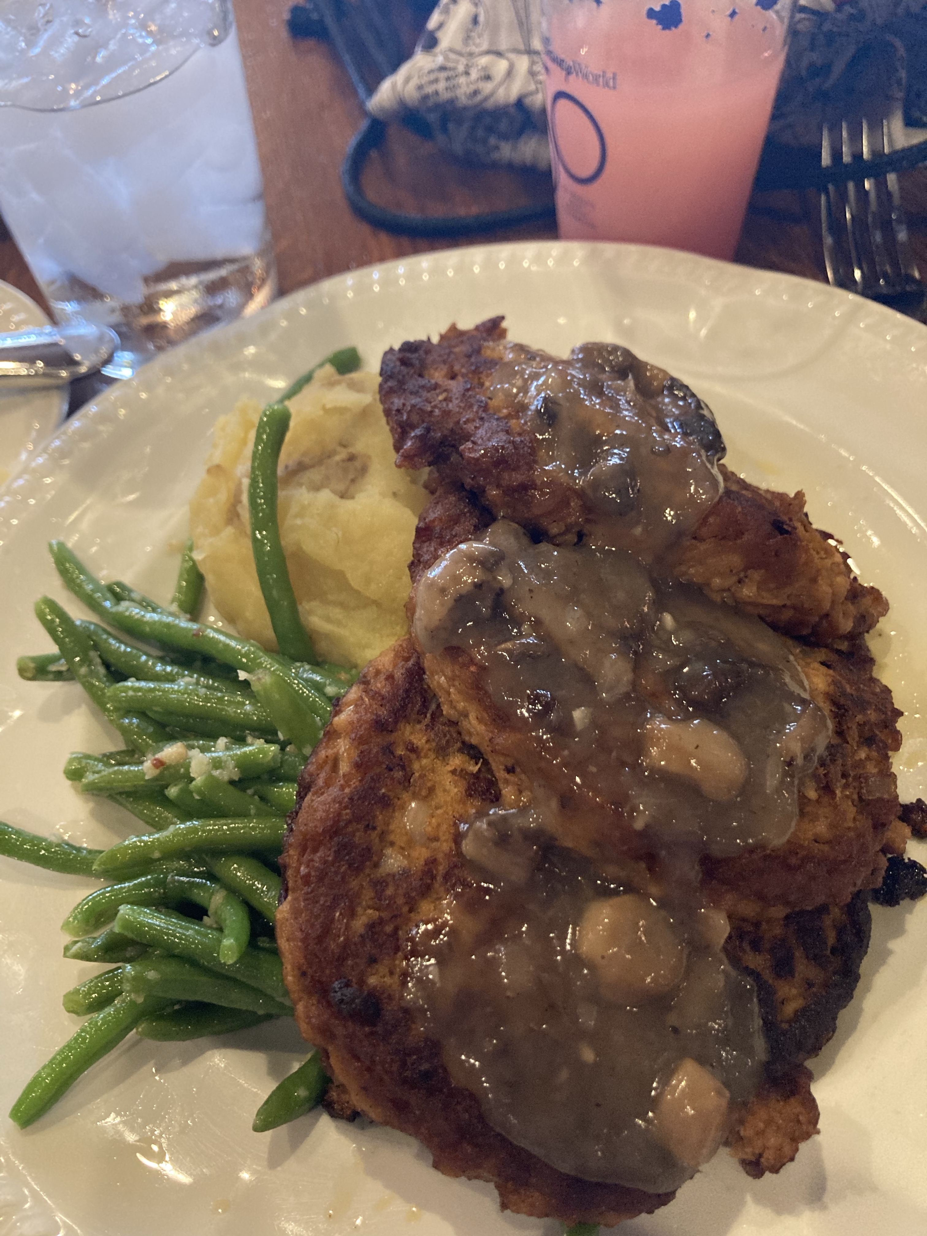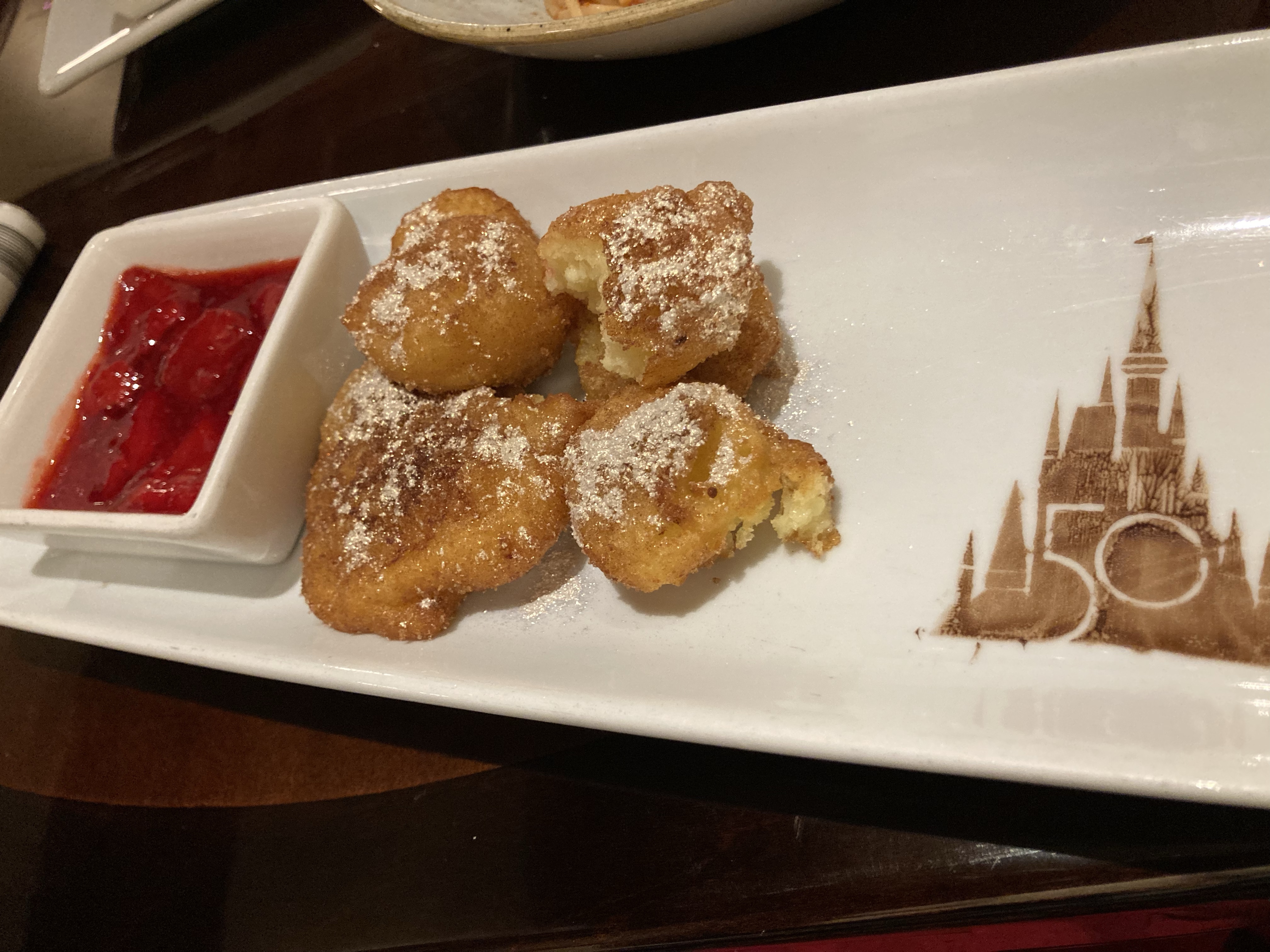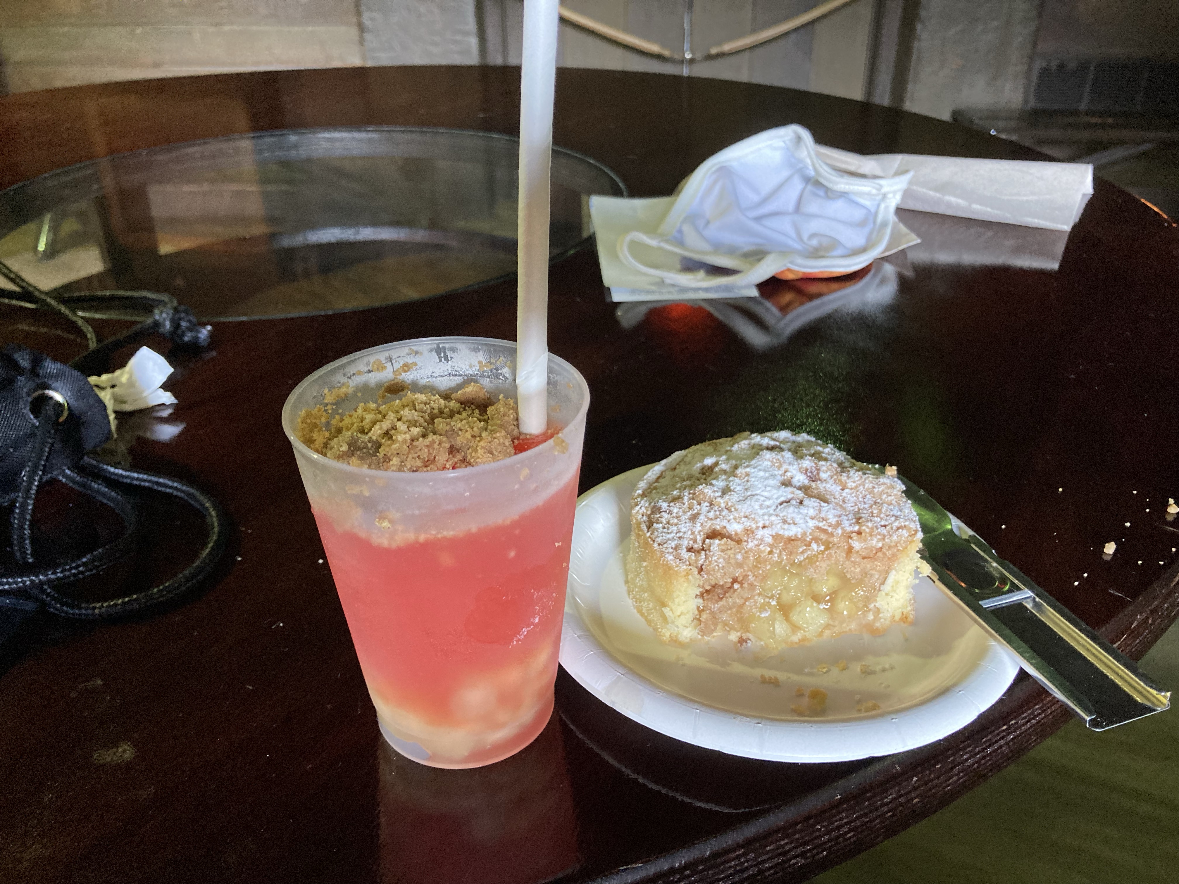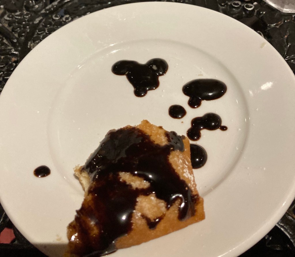 Magic kingdom food…the most incredible impossible meatloaf, toffee cake, and cool swirly lemonade at Liberty Tree, frozen mint julep at Casey’s, and fried mozzarella, impossible meatballs/spaghetti and dreamy donuts with strawberry sauce at Tony’s restaurant