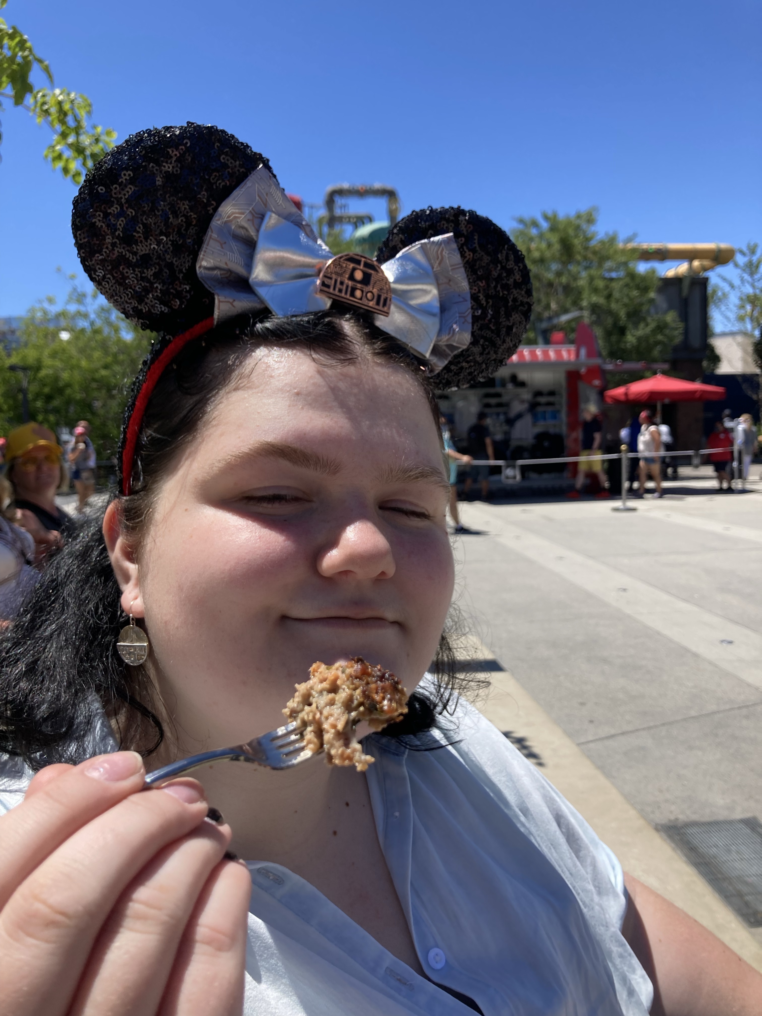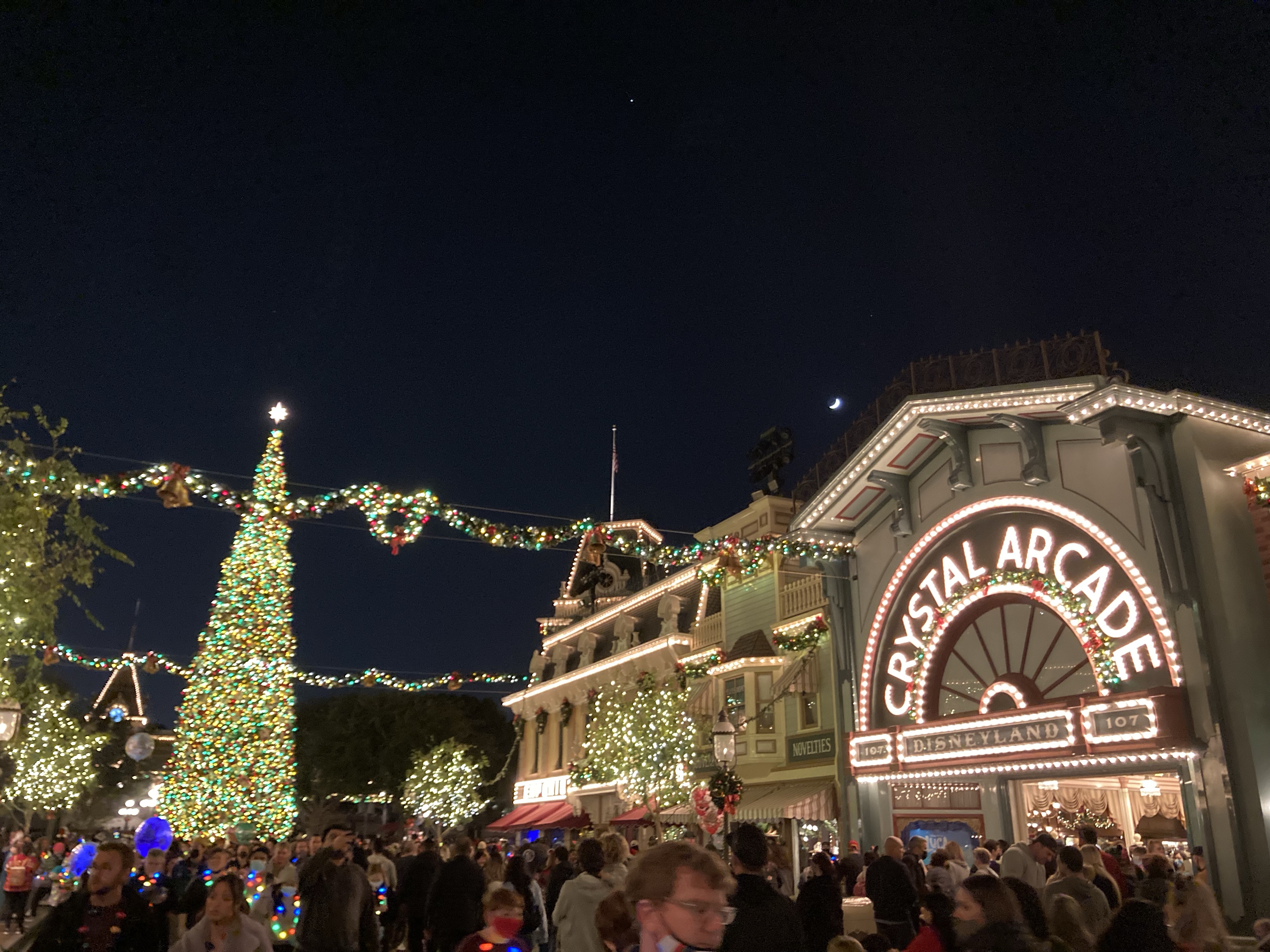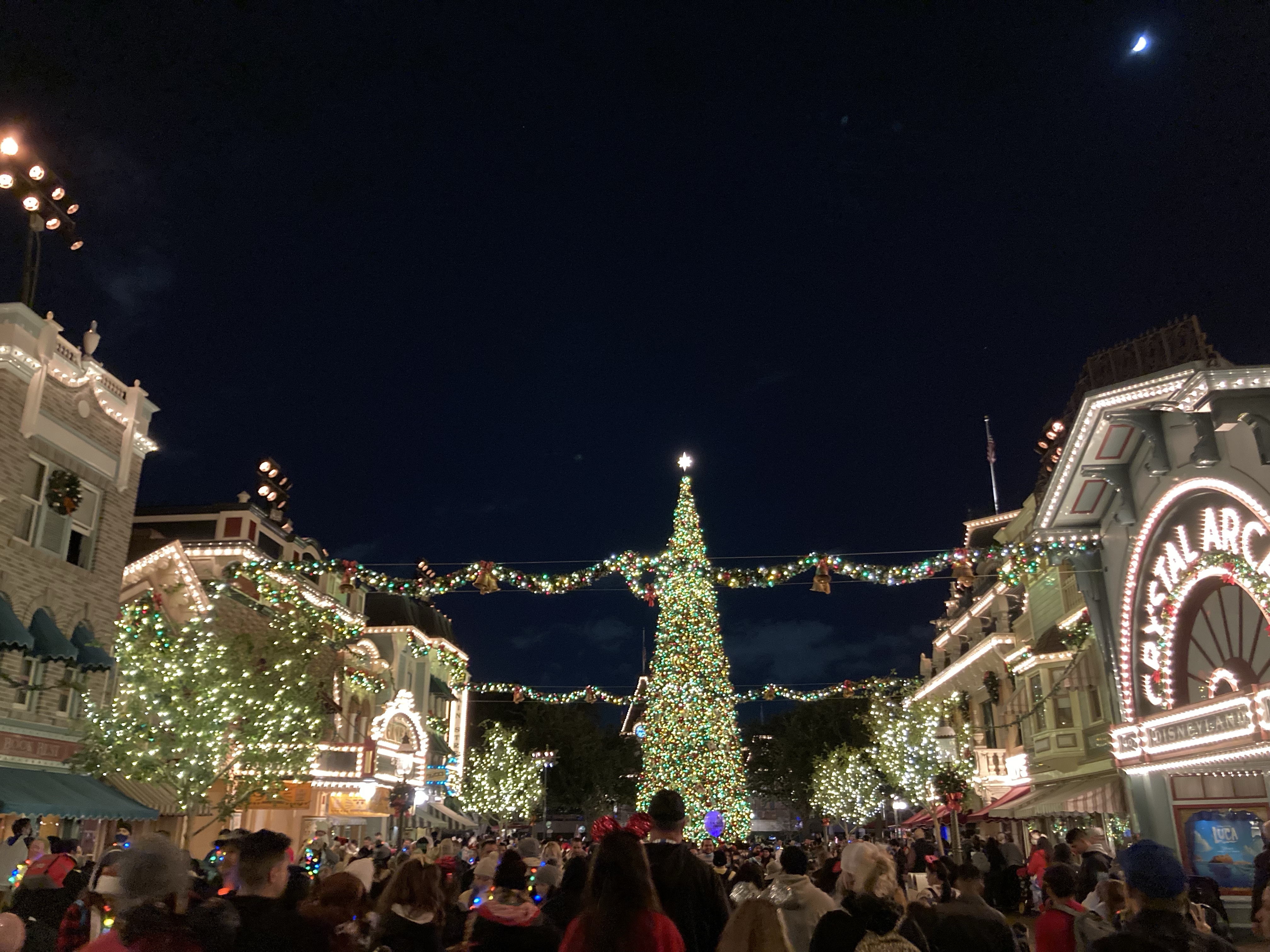 Day 1 – Disneyland So happy to be here! Had drinks at Oga’s Cantina, dinner at Docking Bay, rode Smugglers Run. Cool full moon over Main Street 🙂