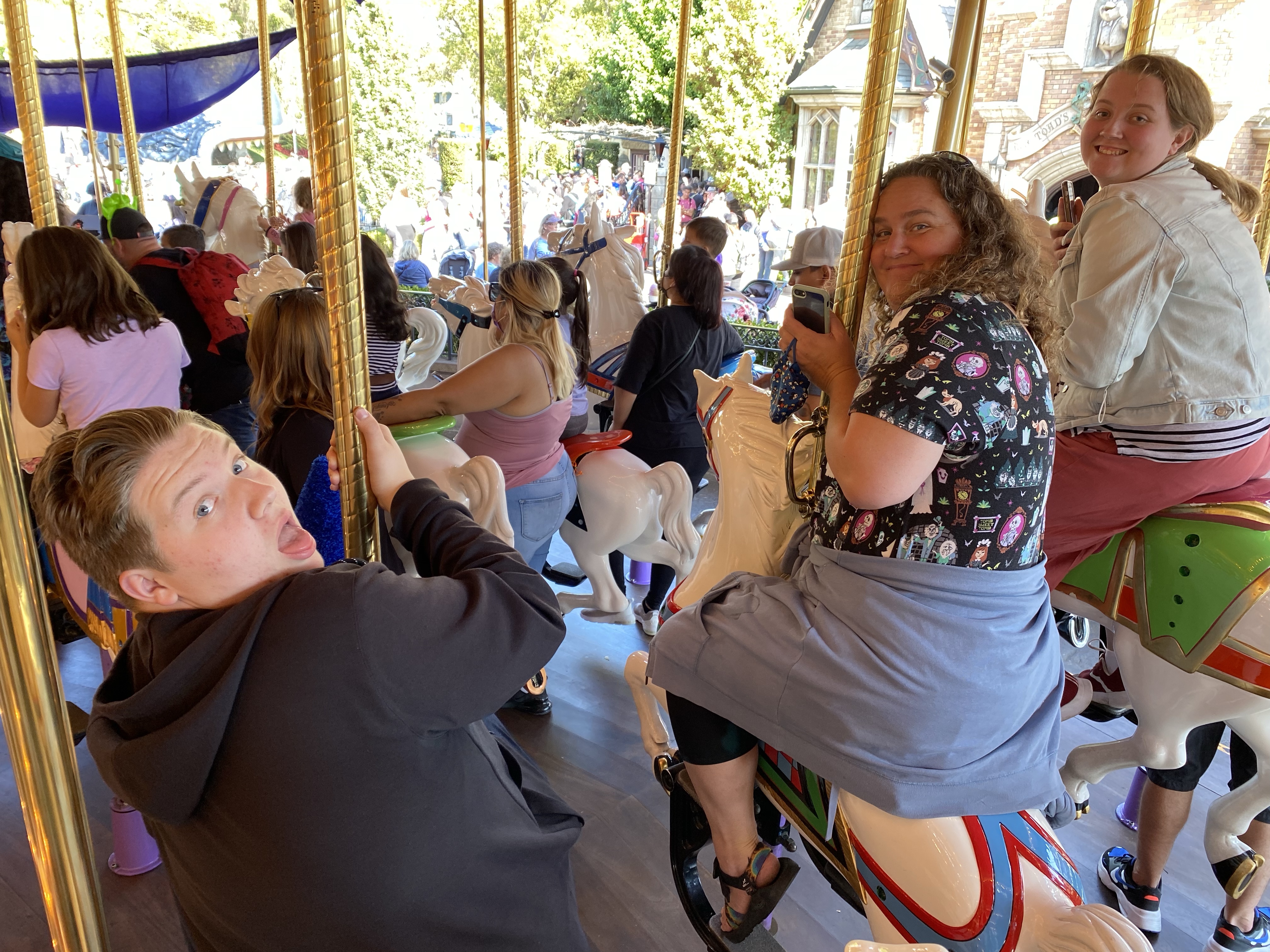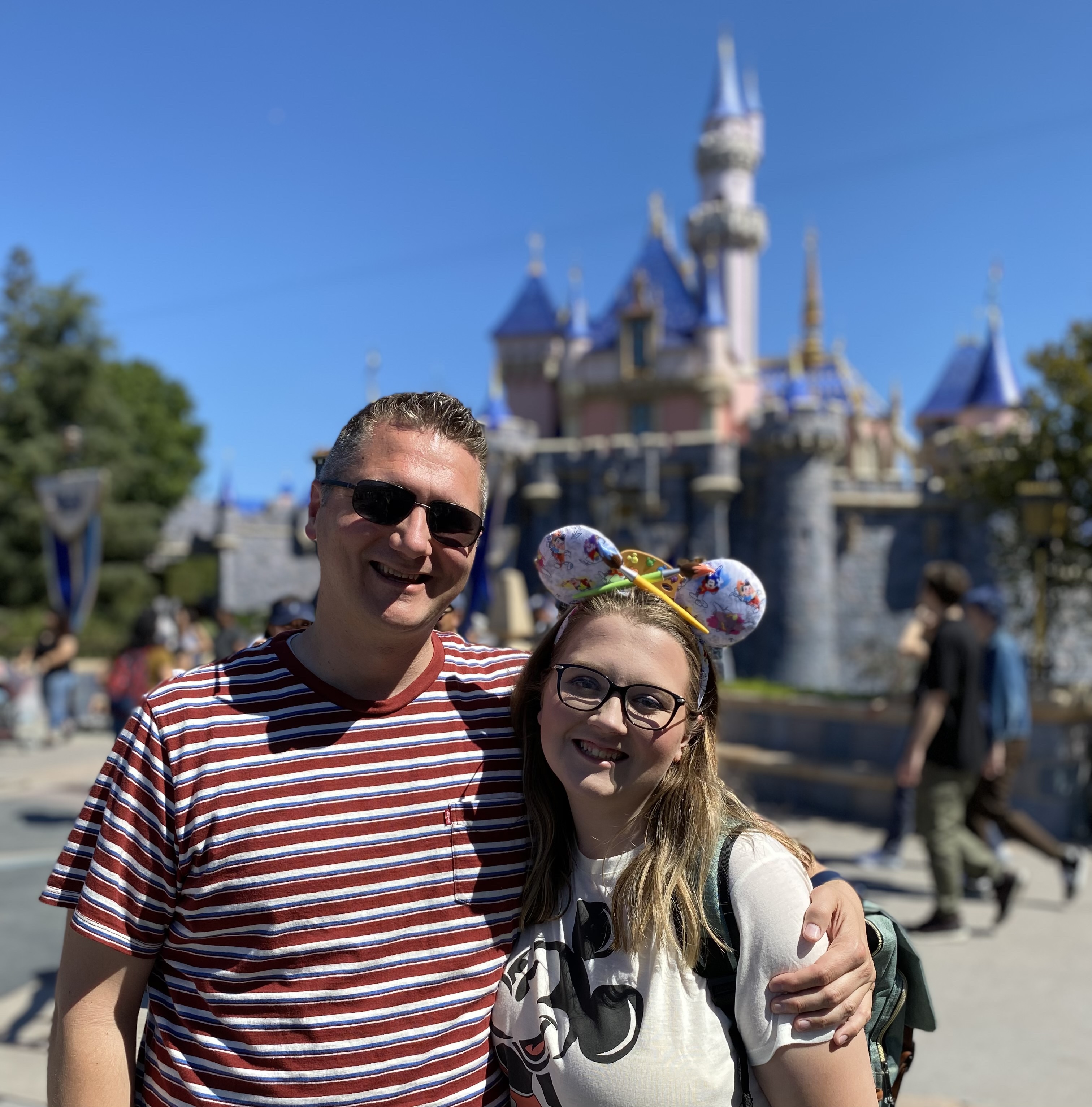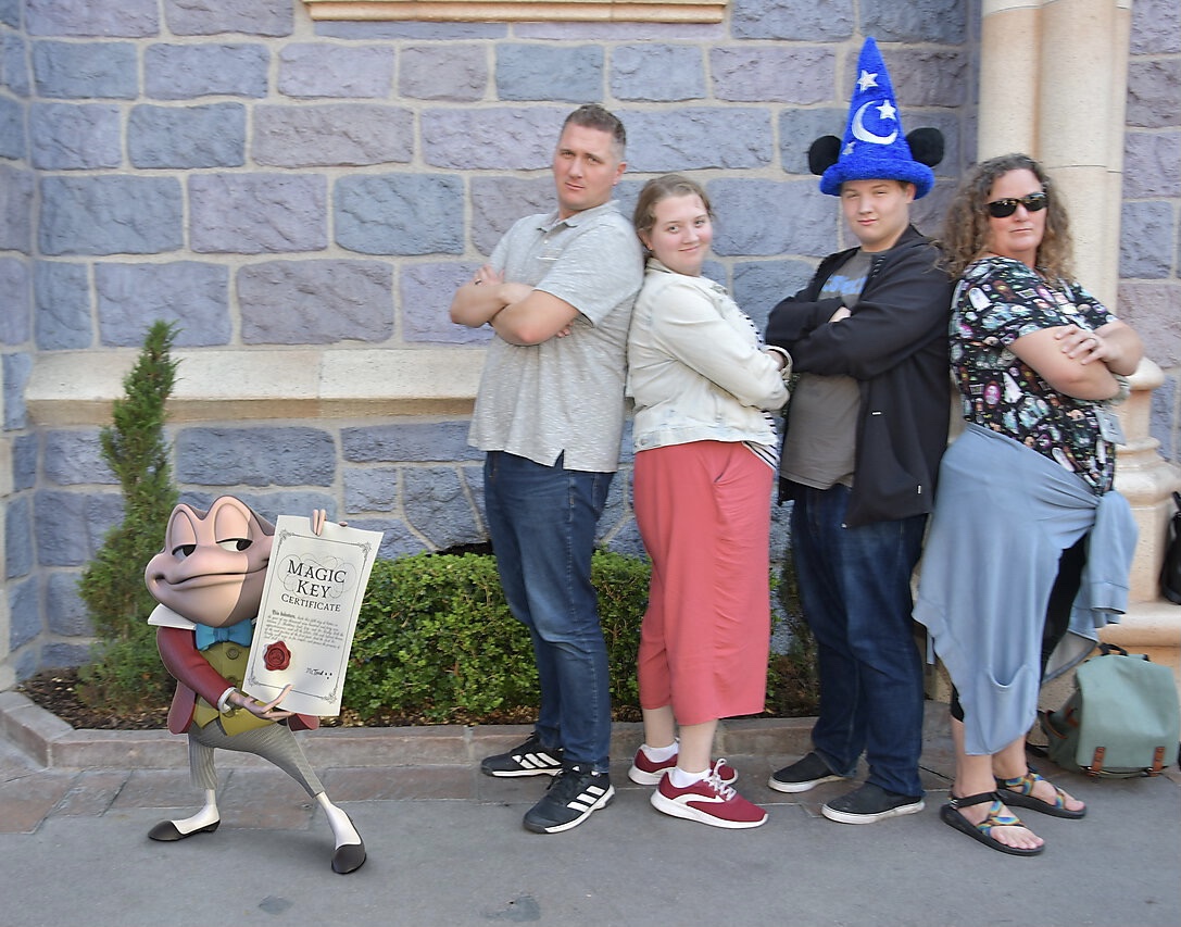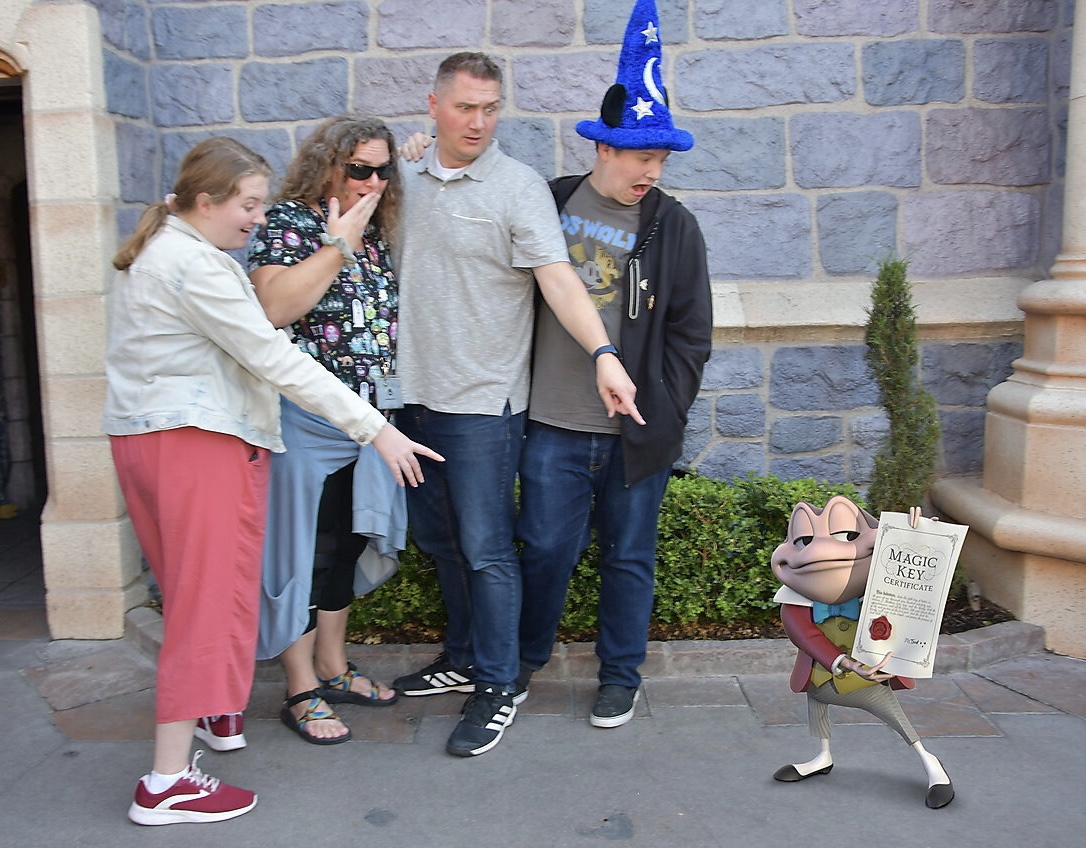 Afternoon 1…Emily’s dream of eating at The Blue Bayou finally came true! and we got a table right on the water edge! Standing at the center of Disneyland. Carousel, Toontown, and a special Mr Toad photo op for Magic Key Holders.