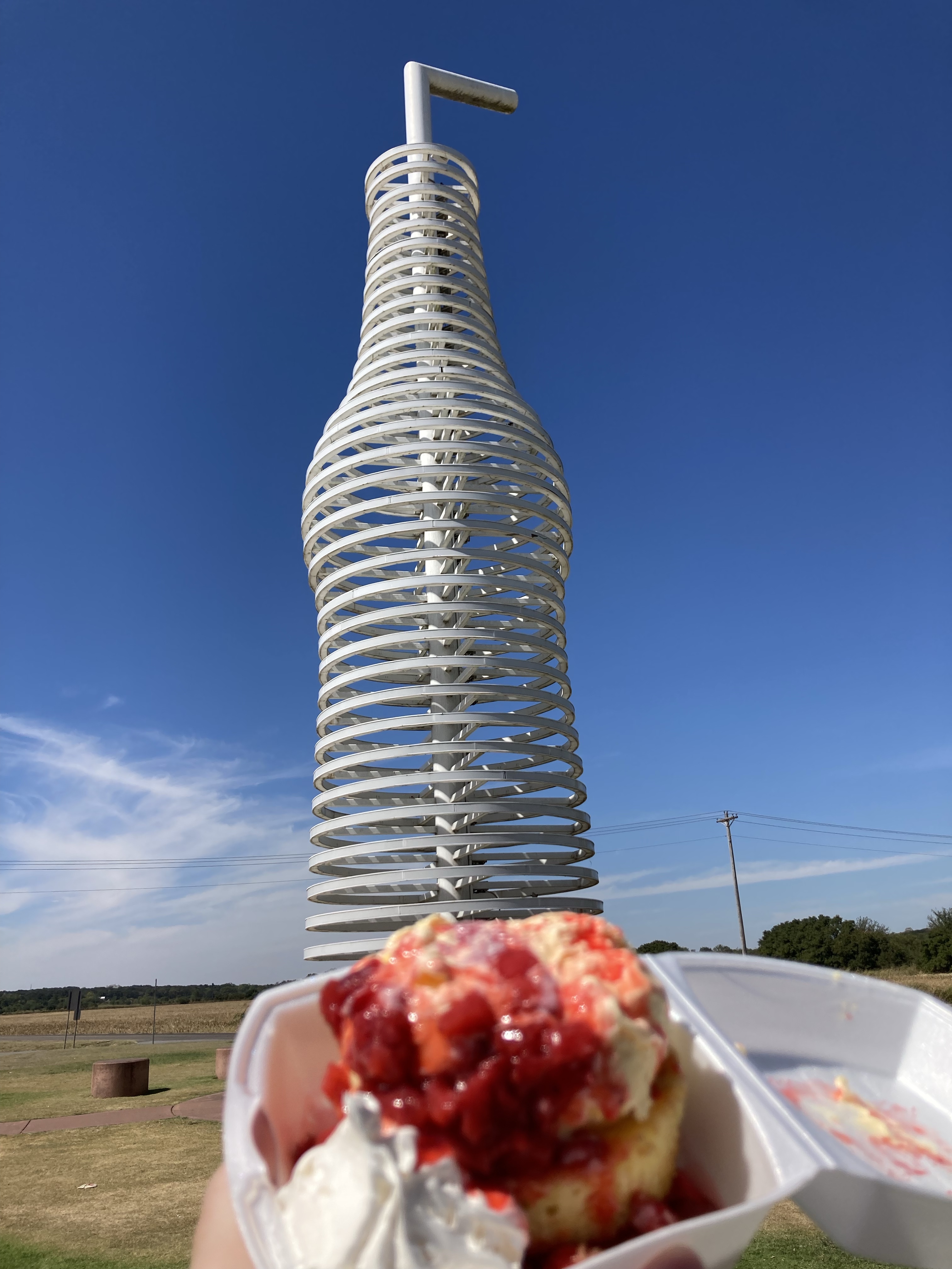 Route 66 Sites…great soda and the most amazing strawberry shortcake from Pops 66, the Round Barn, the Golden Driller statue and the Blue Whale of Catoosa