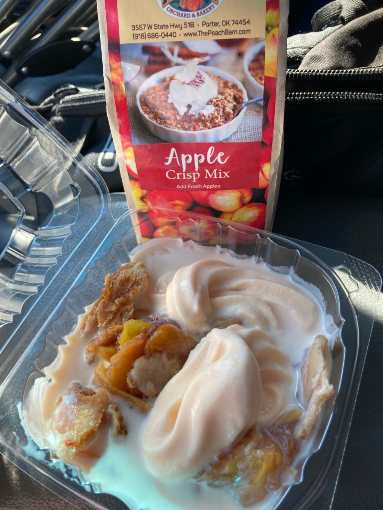 In the middle of Tulsa there is an acoustically weird spot called the Center of the Universe. If you stomp on the ground you can hear it like it’s happening right next to your ear. Peach cobbler and apple crisp mix from the Peach Barn in Porter. Amazing!