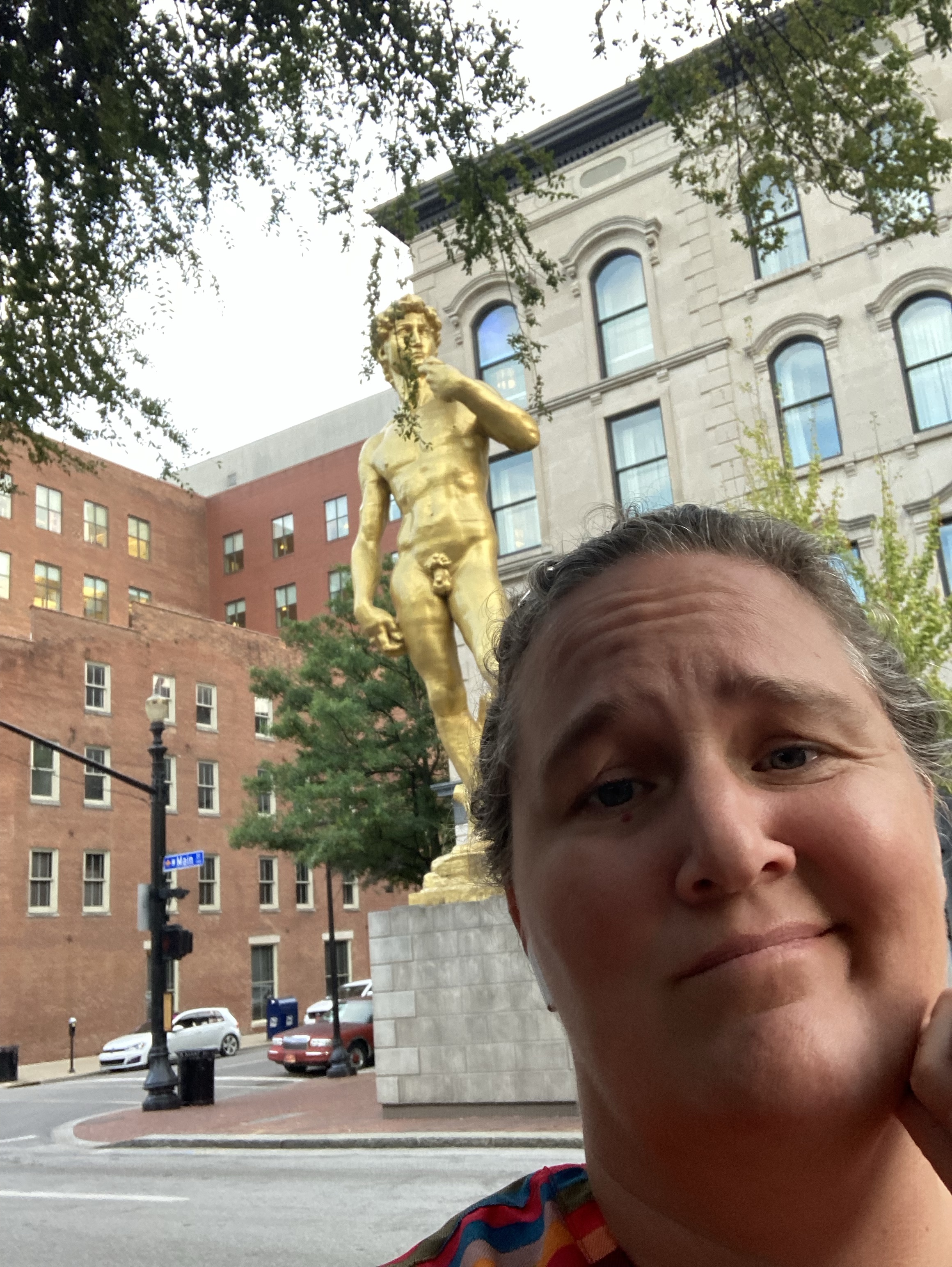 Golden statue of David in Louisville and the Kentucky state Capitol in Frankfort