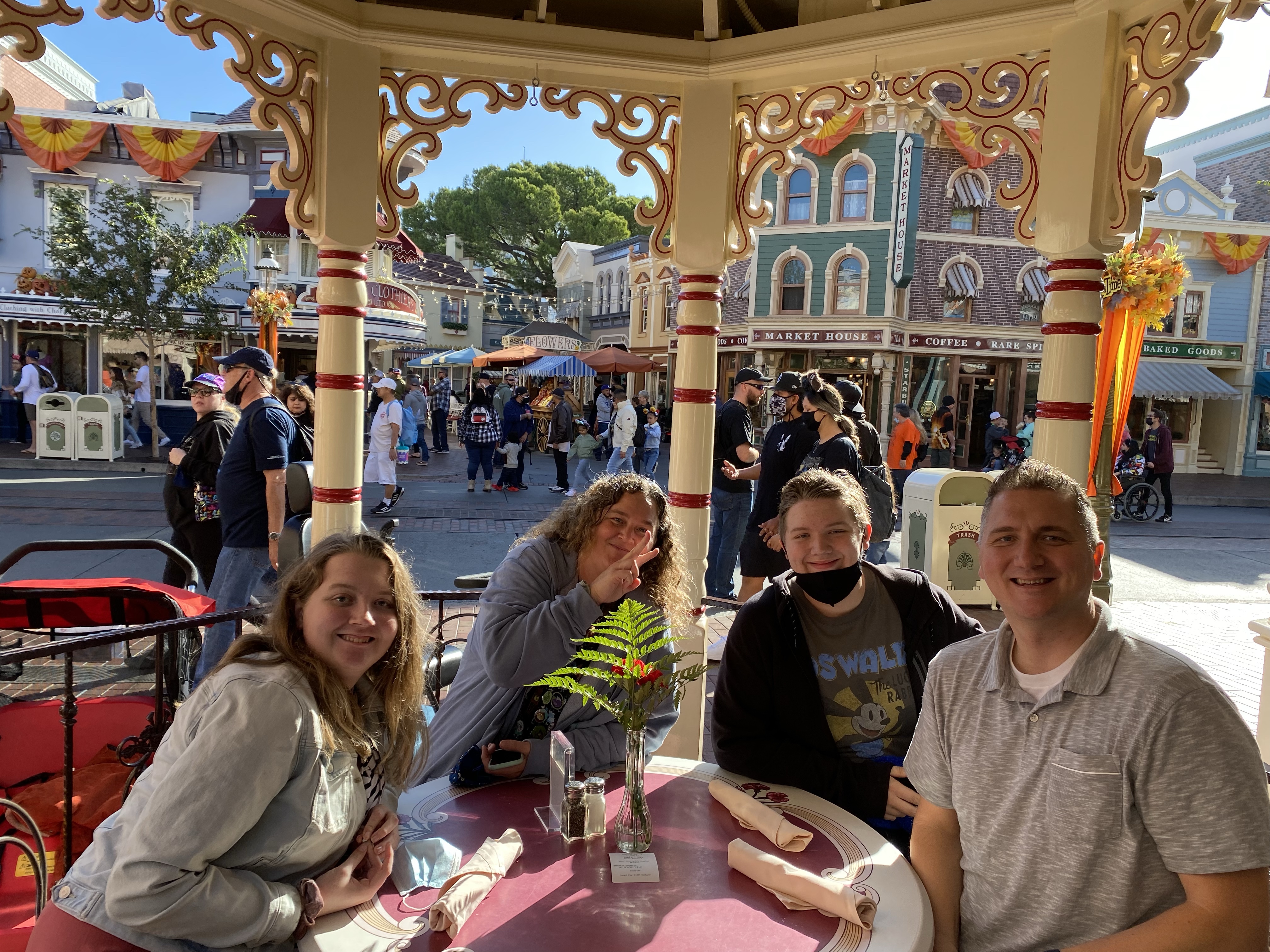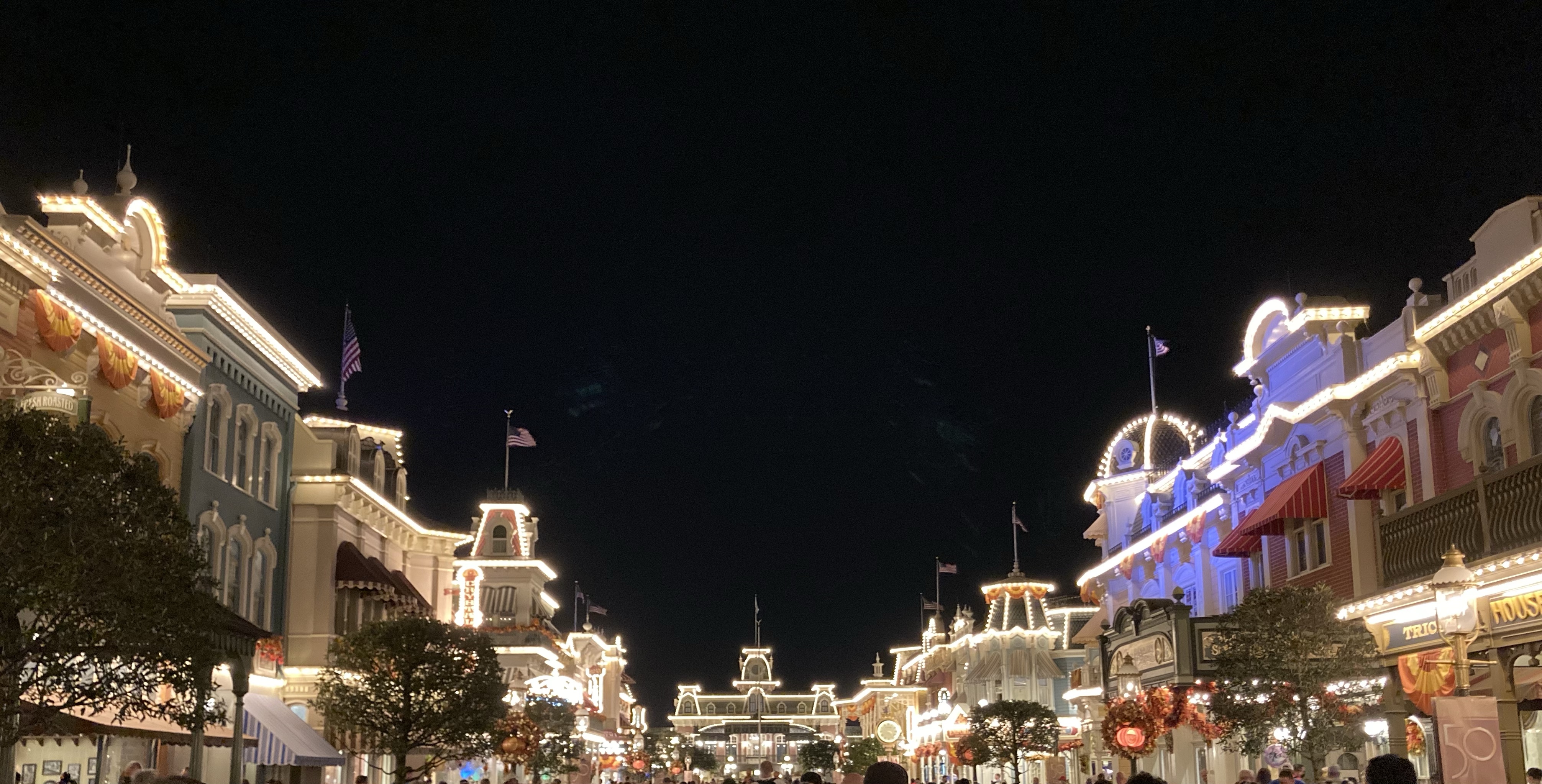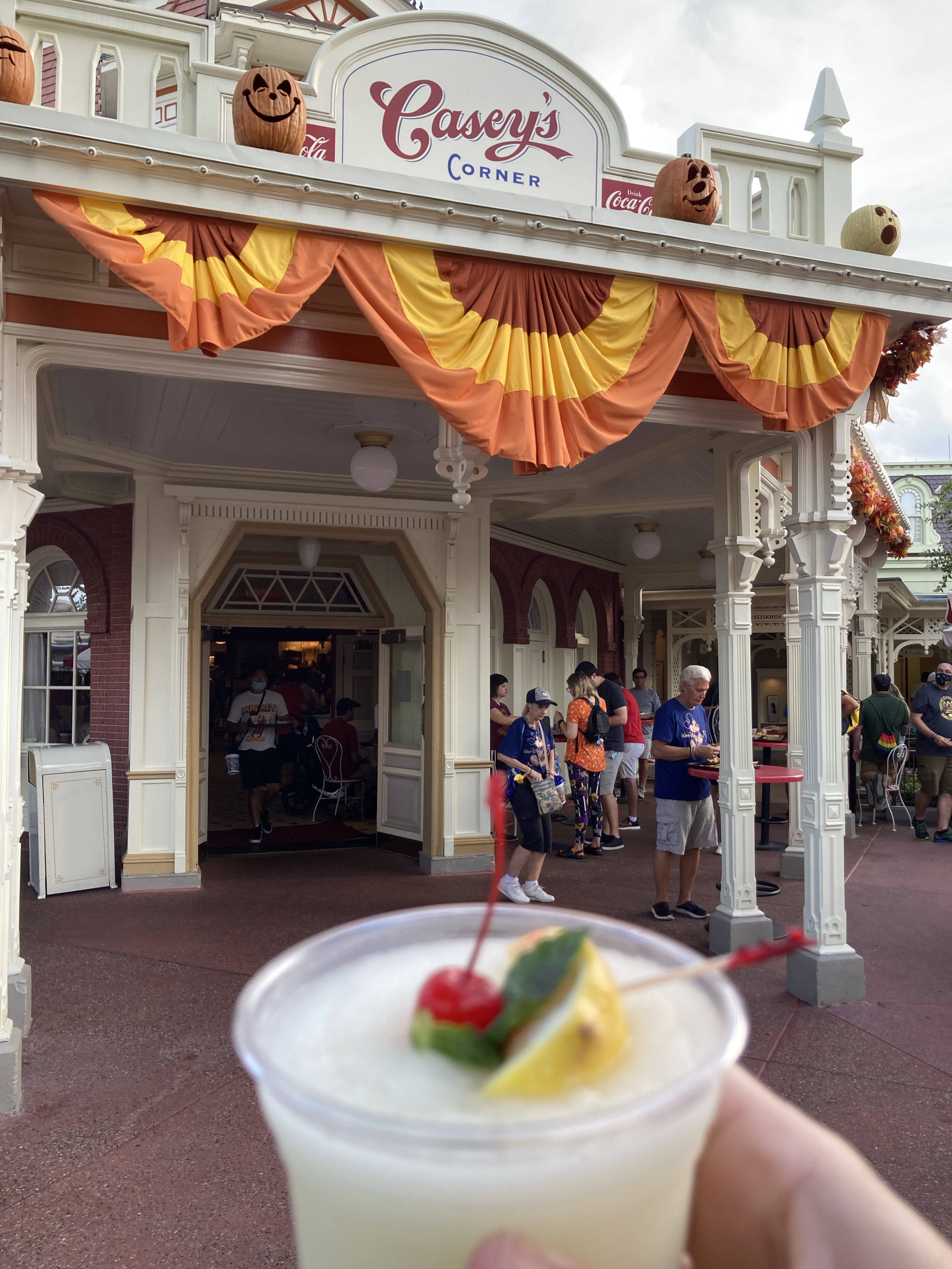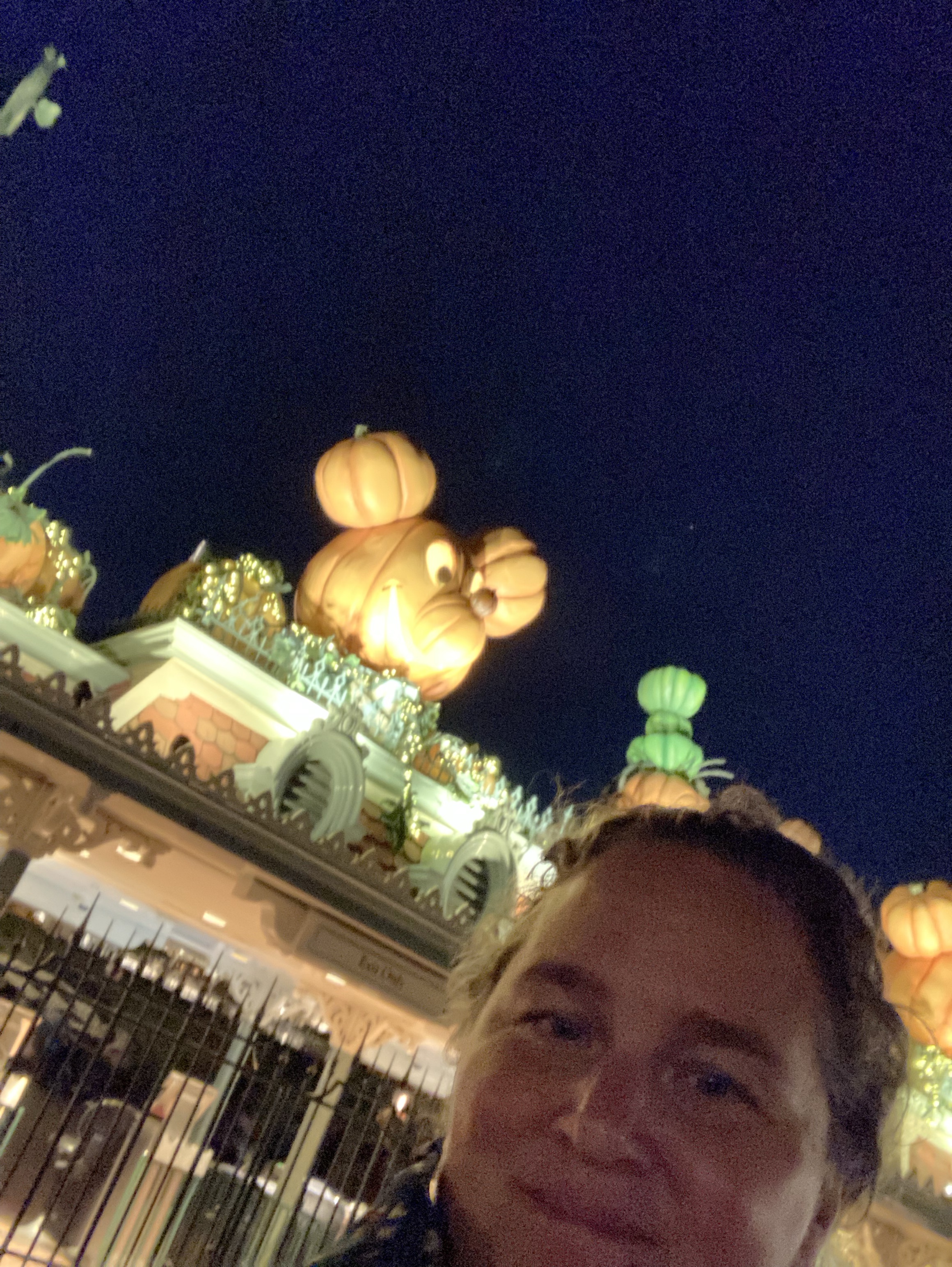 Made it to the park at about 9 pm. Had grilled cheese at jolly holiday, rode pirates and Indy and looked for decorated pumpkins on the way back to the condo