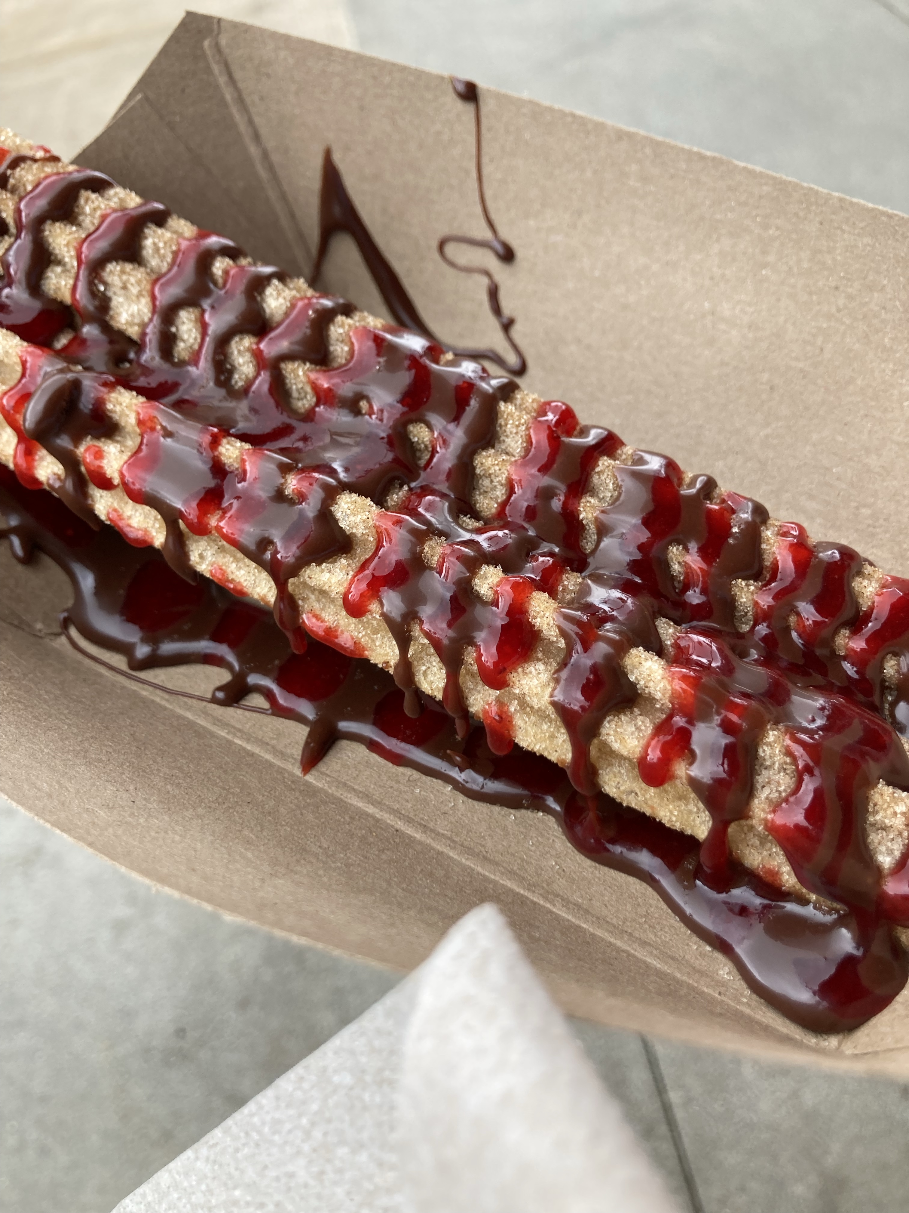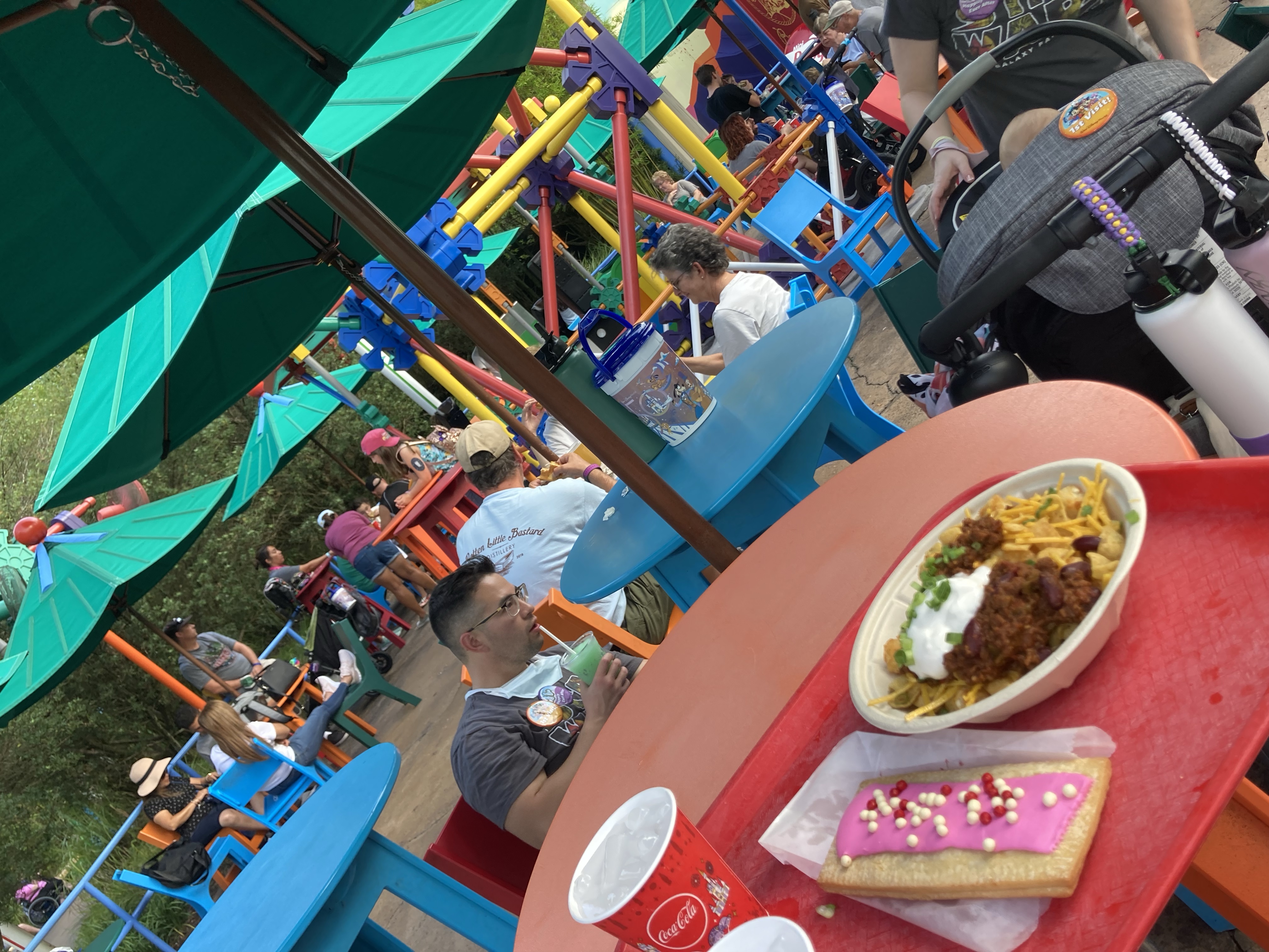 Day 1 – DCA Racers first (wahoo!) then snack time on the pier (num nums and ice cream) where ada tied the cherry stem into a knot with her tongue 🙂 We waited for grizzly all day but it stayed closed 😦 Explored the new avengers campus and ate at Pym test kitchen for lunch (funny combo of big and small food). I rode guardians while everyone else put their feet up. Rode Mater, monsters inc, took a drawing class, and ate nachos, showing off our cool friendship bracelets that I made for the trip :). The new Spider-Man ride is so cool! We got into the virtual queue at noon.