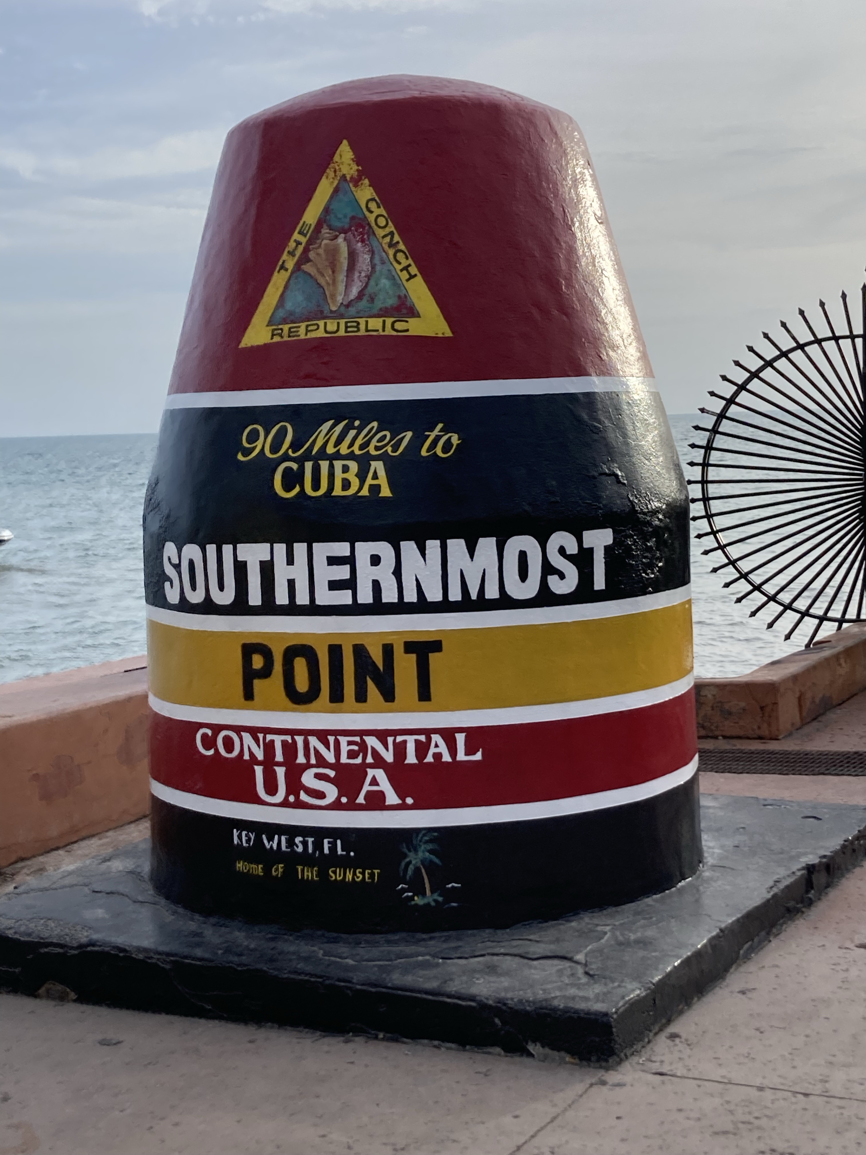 Visited the southernmost point and got delicious key lime pie in key West. Drove back to the mainland stopping at key lime pie factory. Stayed at Florida City and discovered a DIY back lotion applicator (AKA mirror) 🙂