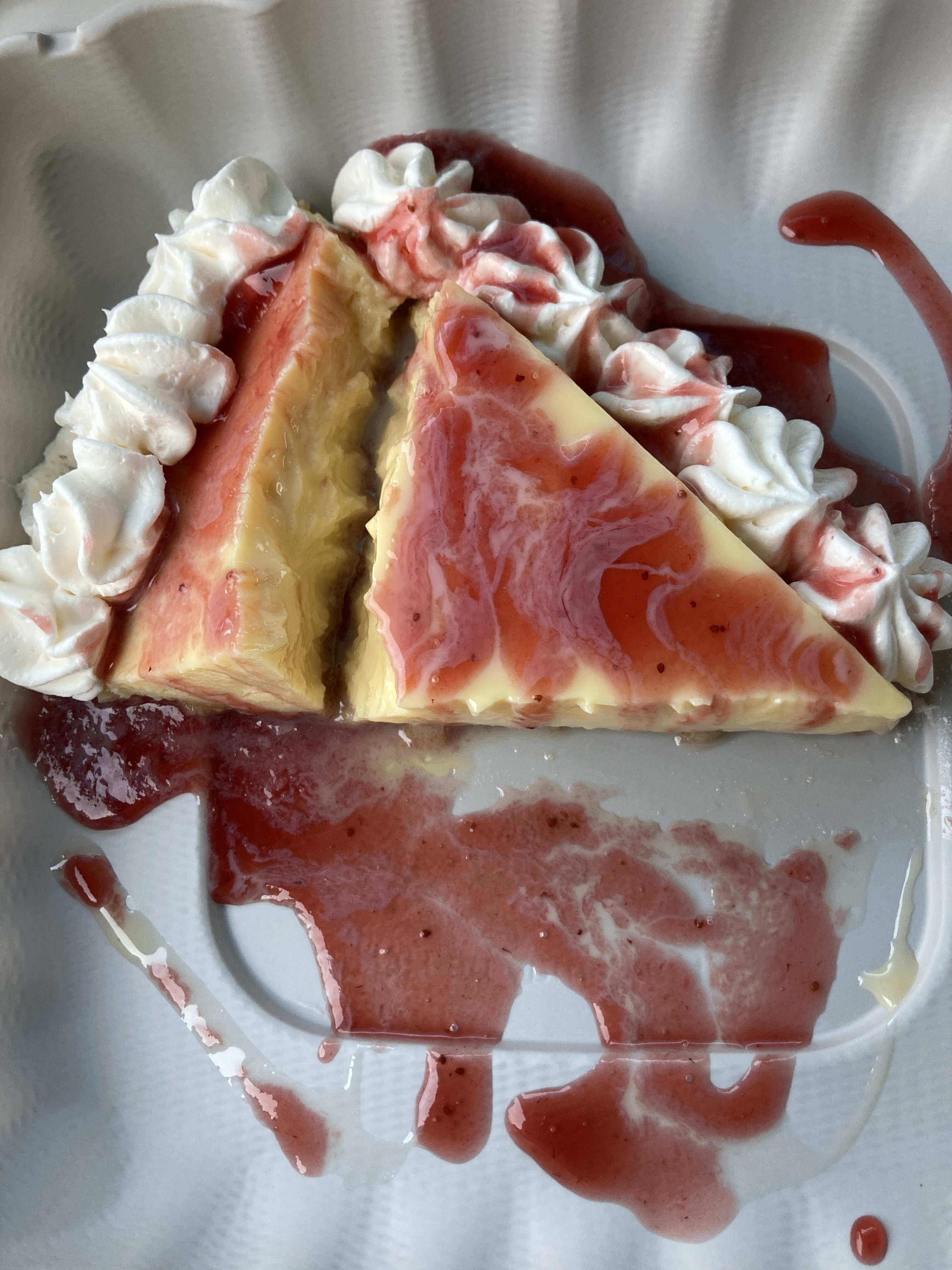 Italian food and delicious sugar pie with strawberry sauce at a random corner restaurant