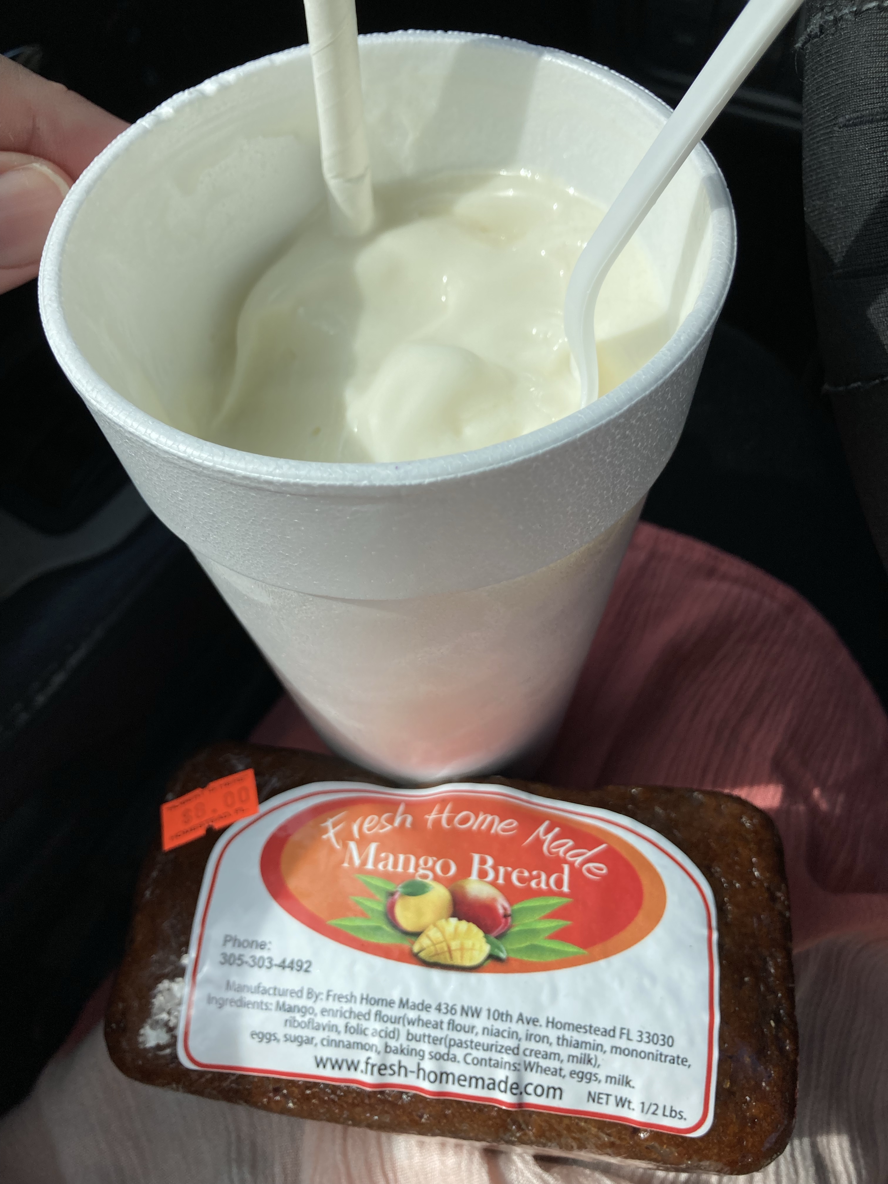 Fort Lauderdale templeTortilla bocadillo (yum!) from a Spanish store in Miami. Bought rosquillas, thick chocolate, and bravas sauce