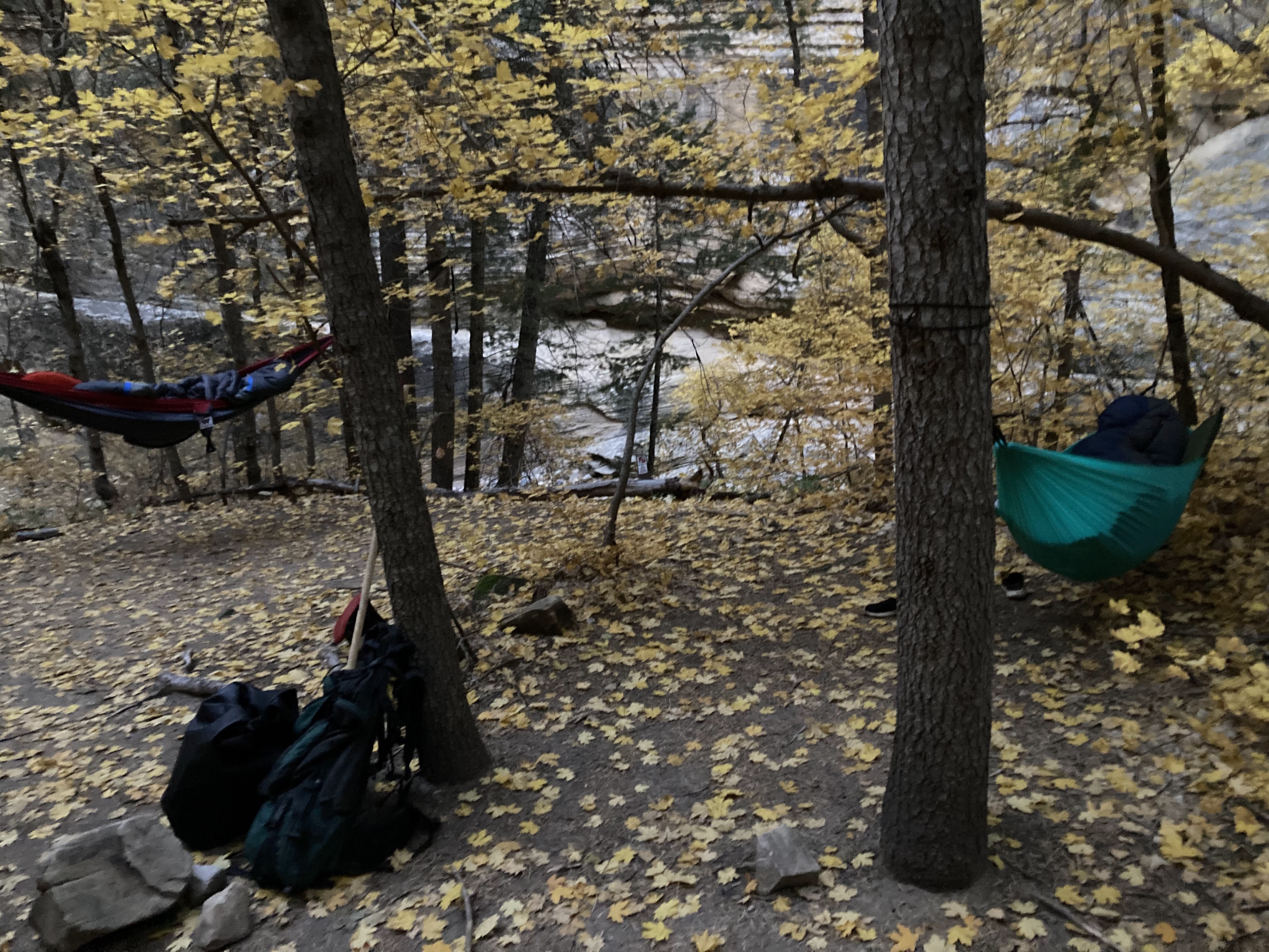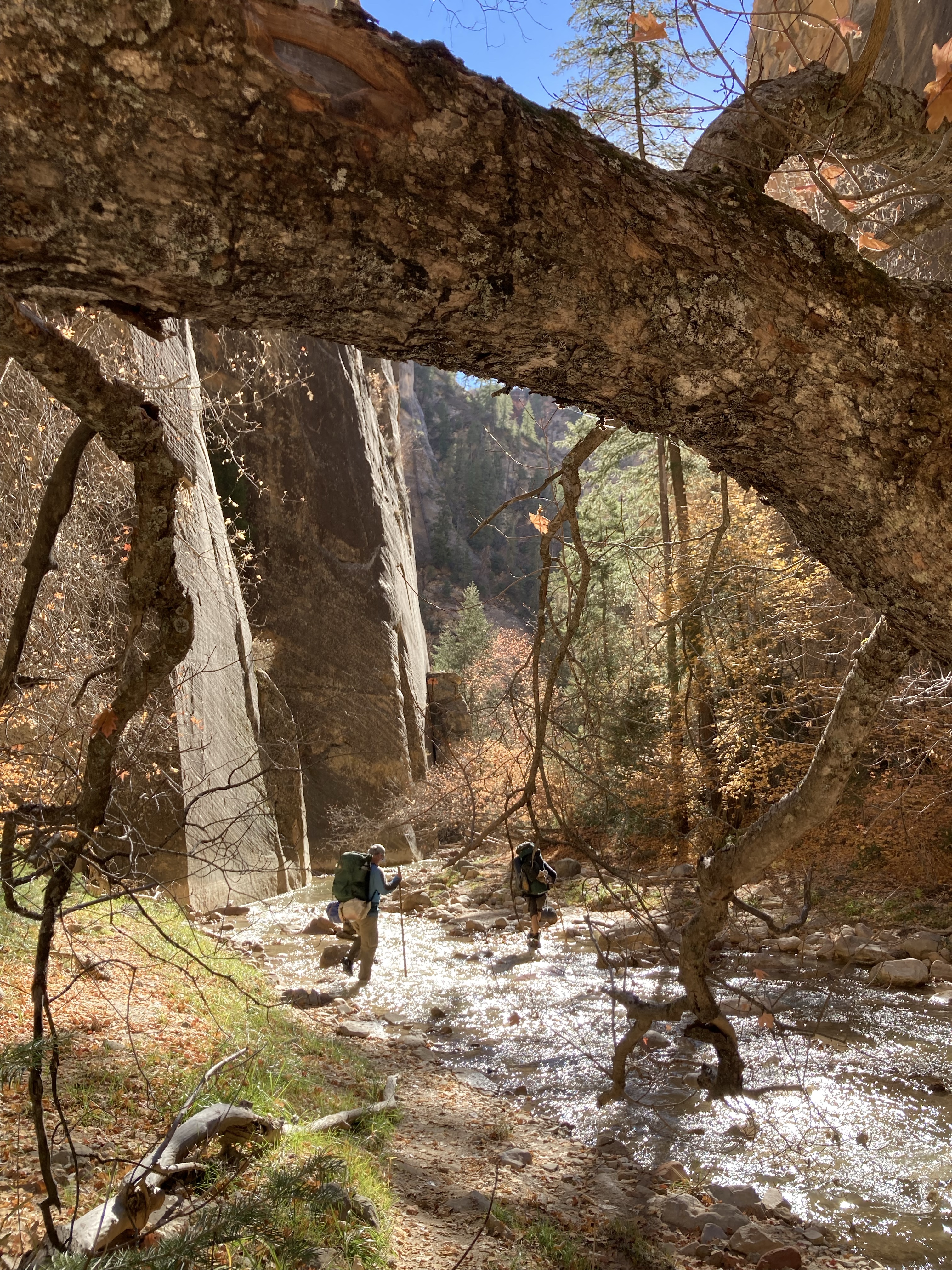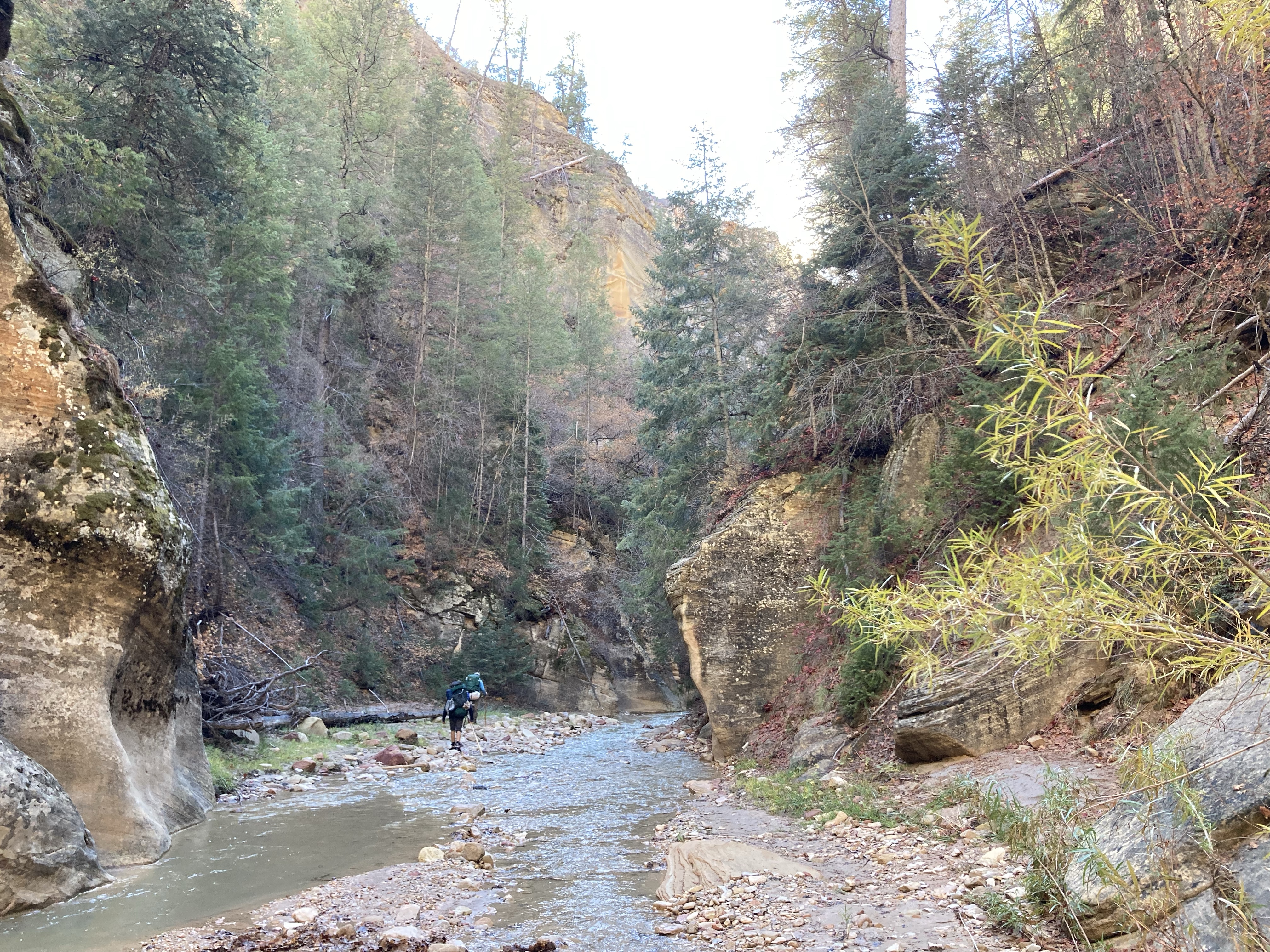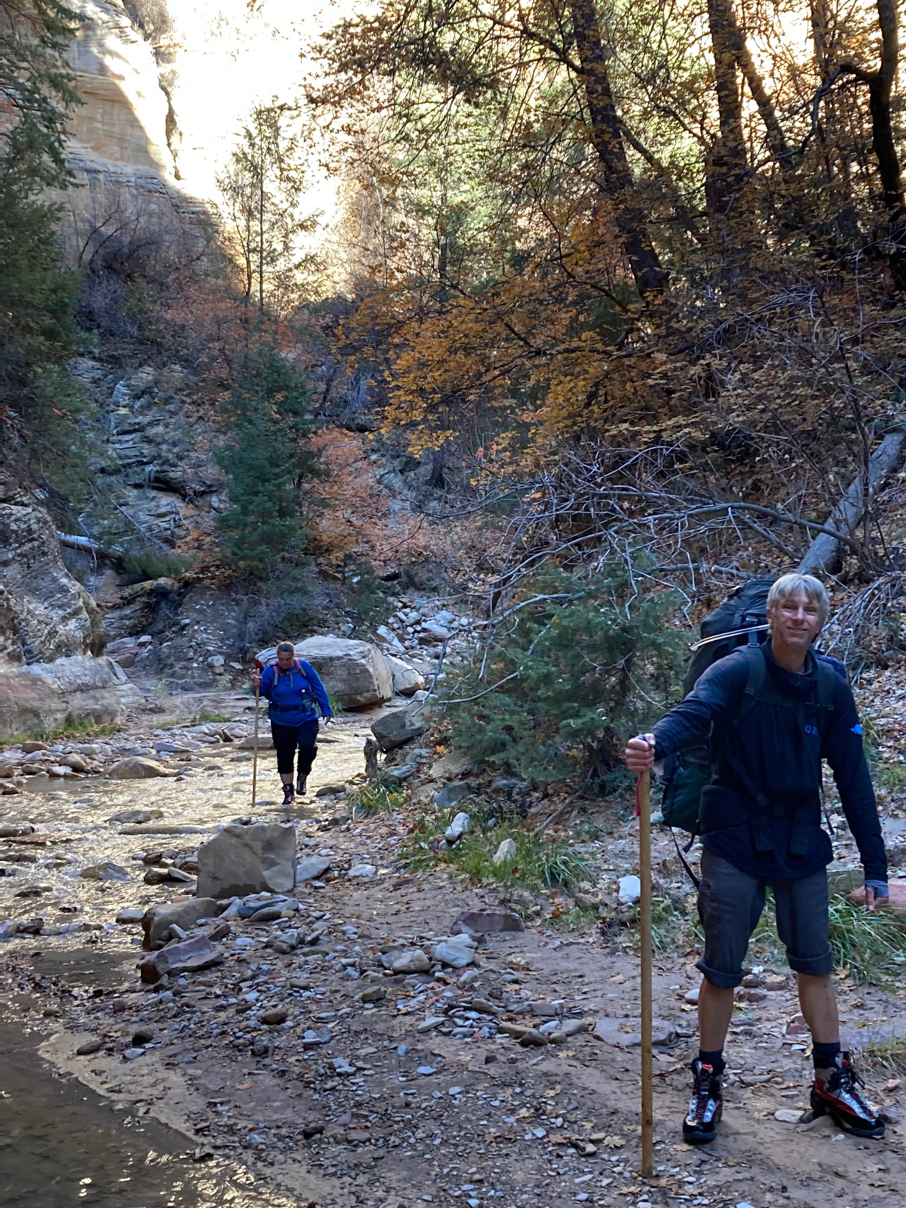 Overnight hike with Ken and Scotty. Very hard and incredibly beautiful! We rented dry suits, neoprene socks, and boots for hiking in water. We stayed at a site along the trail where we set up hammocks (it was so cold!) On day 2, Ken and Scotty took my pack off and on since I was slow and my knee was really hurting me.