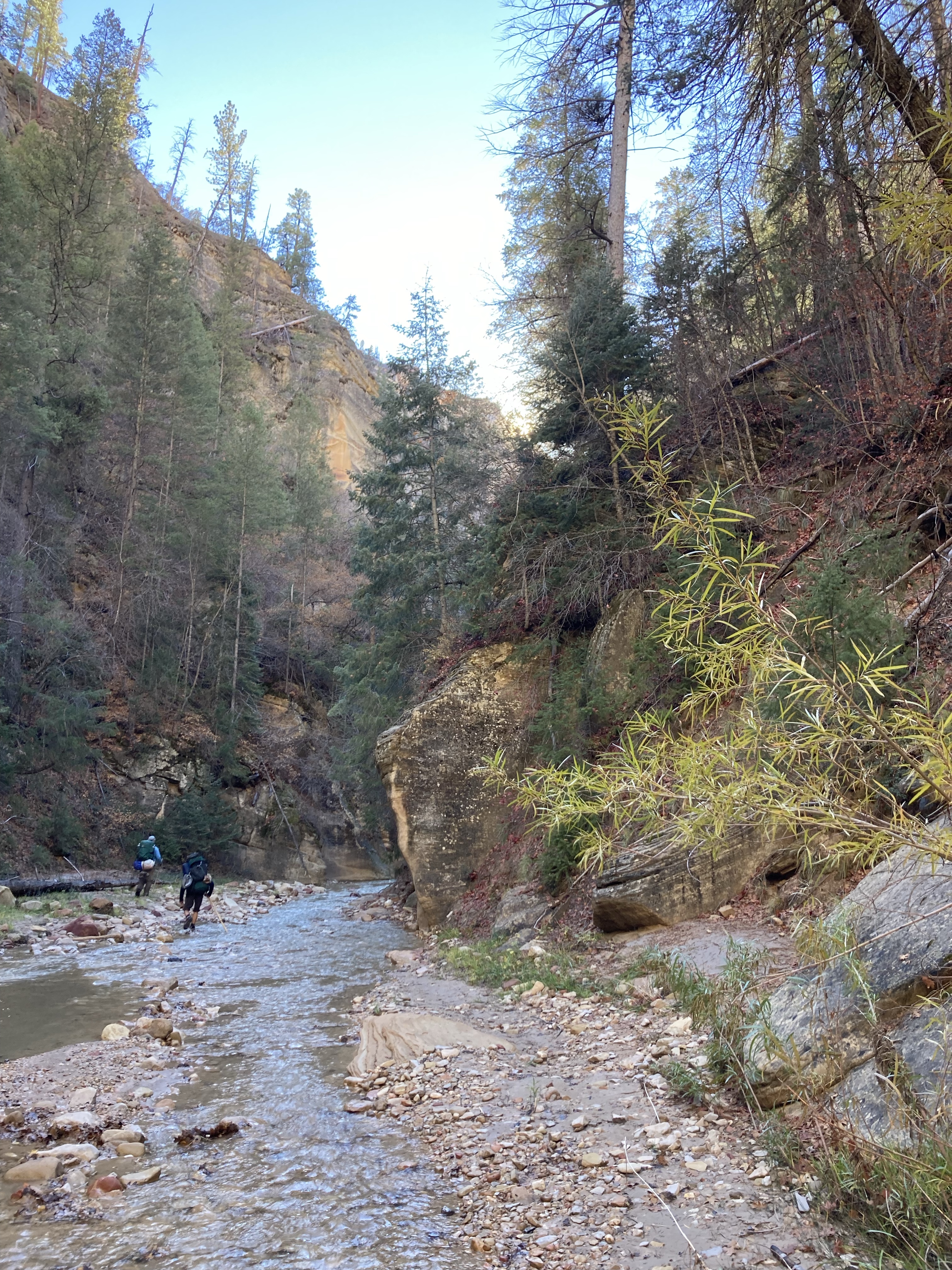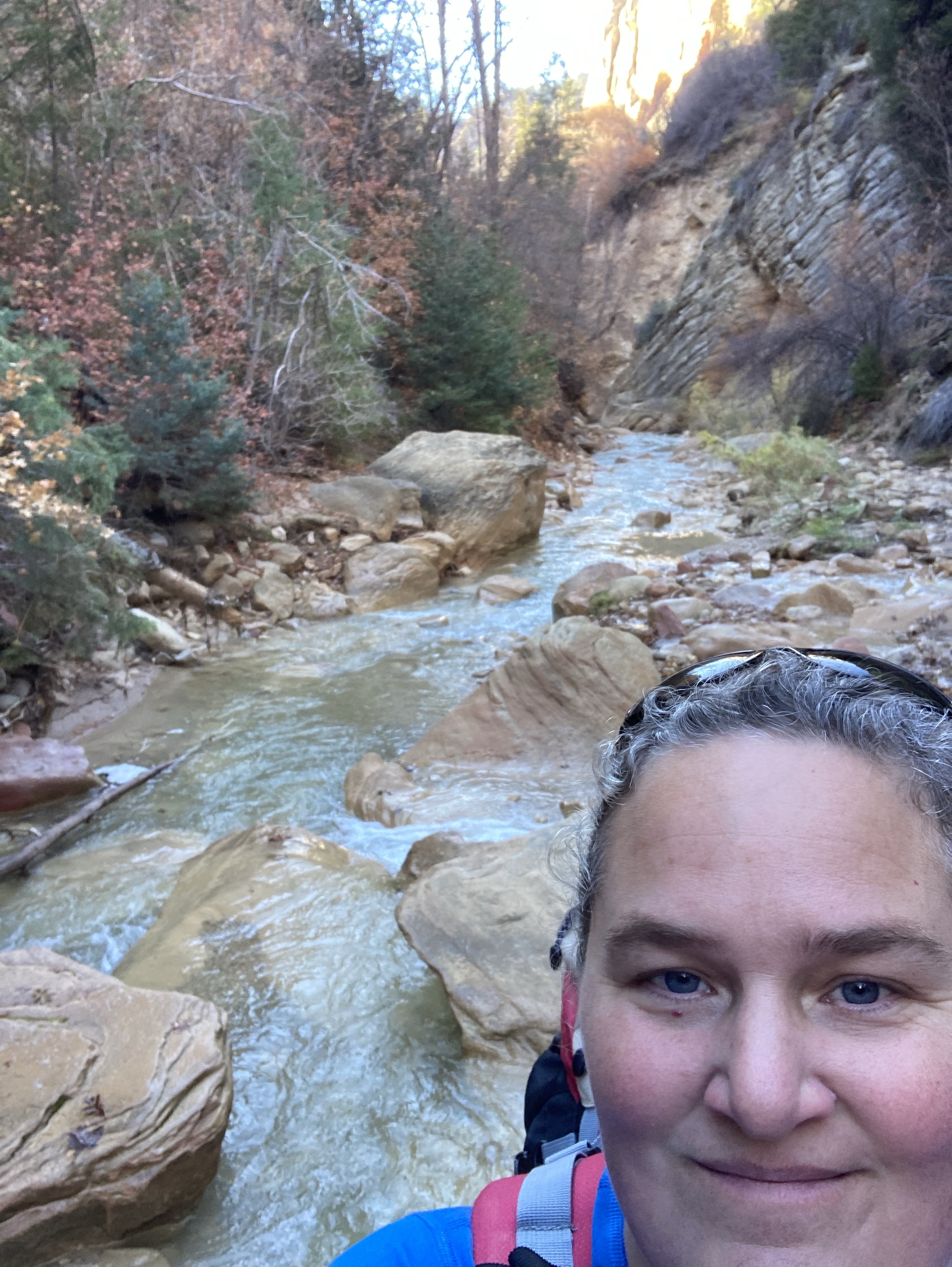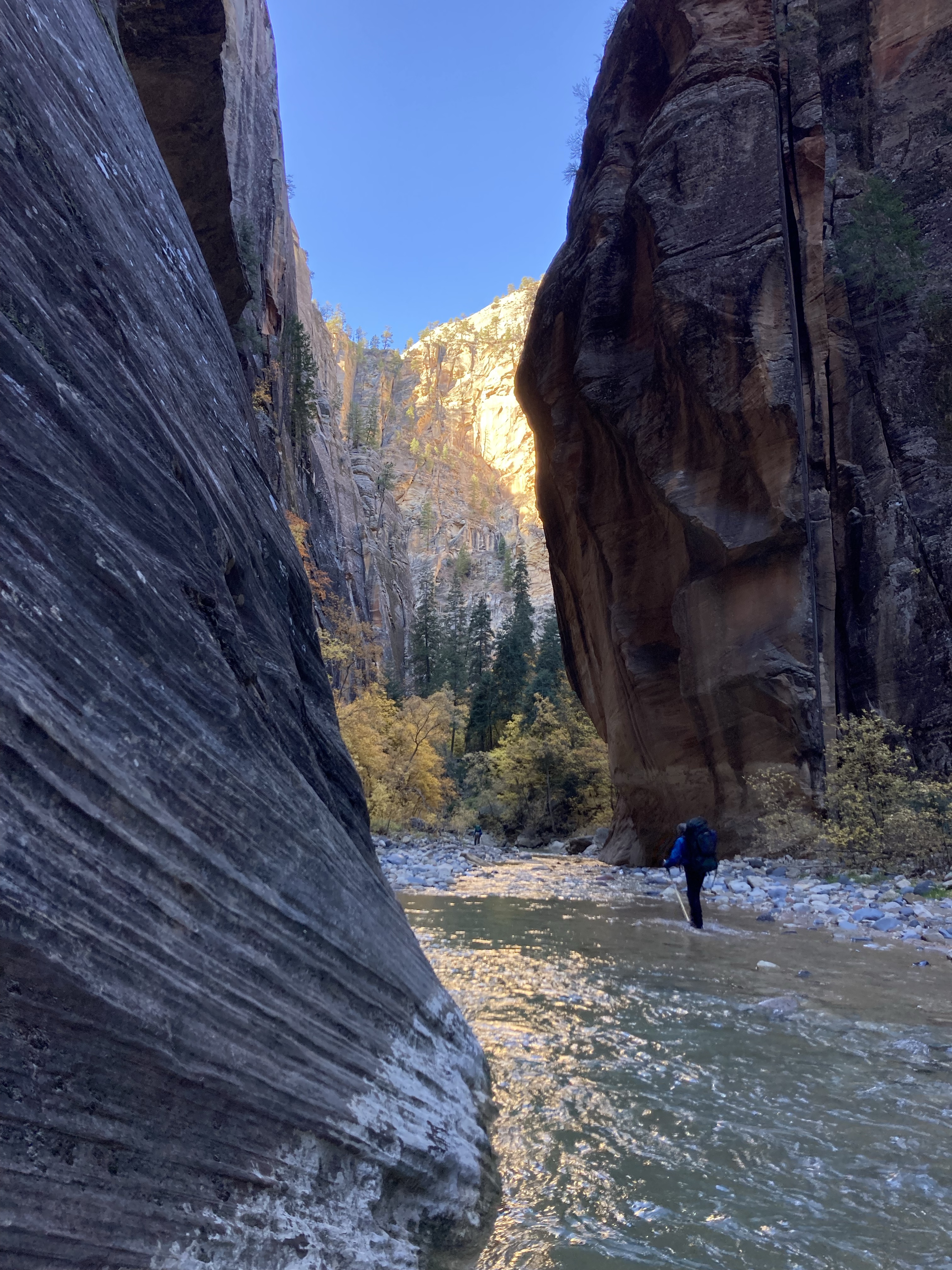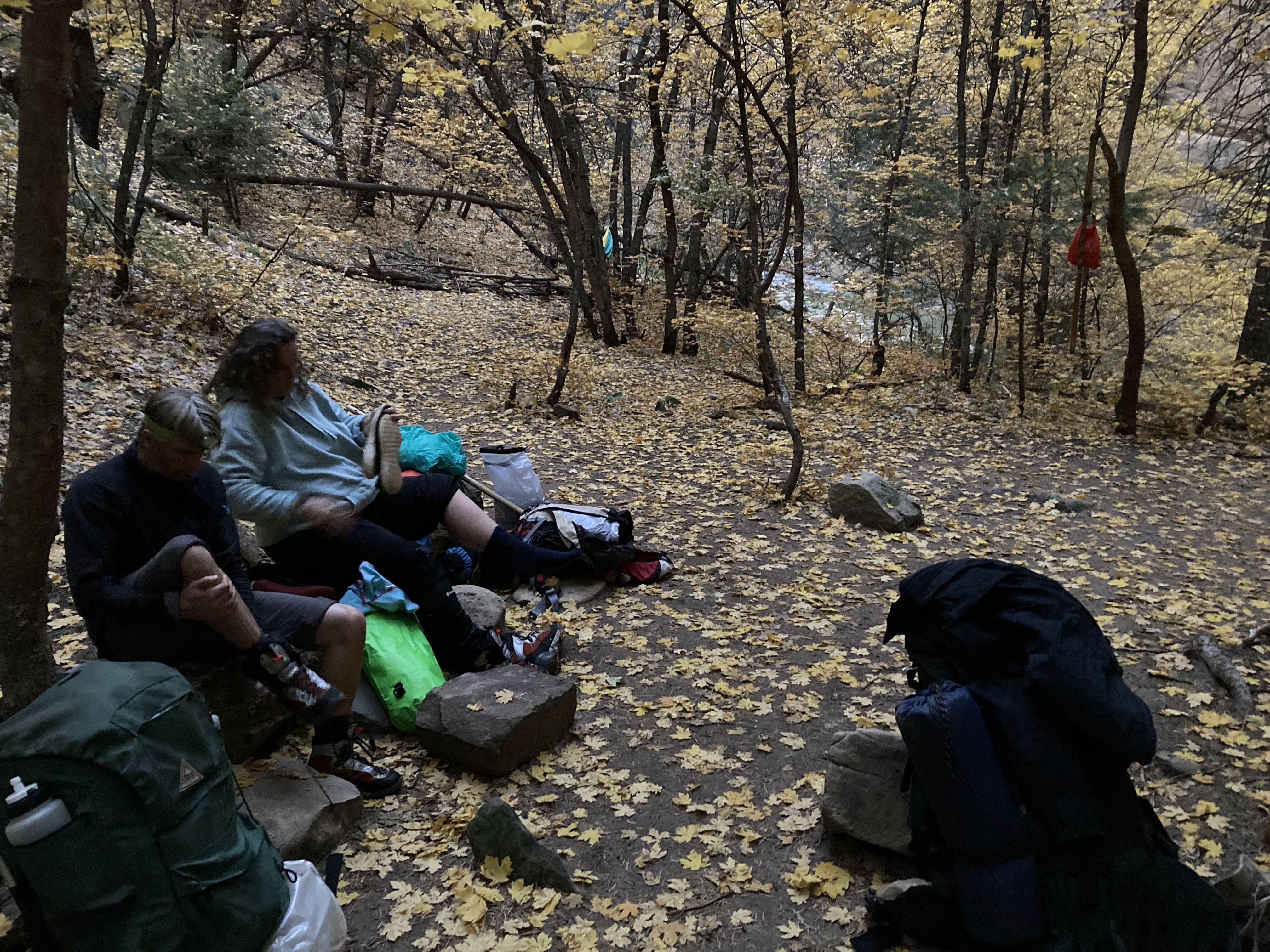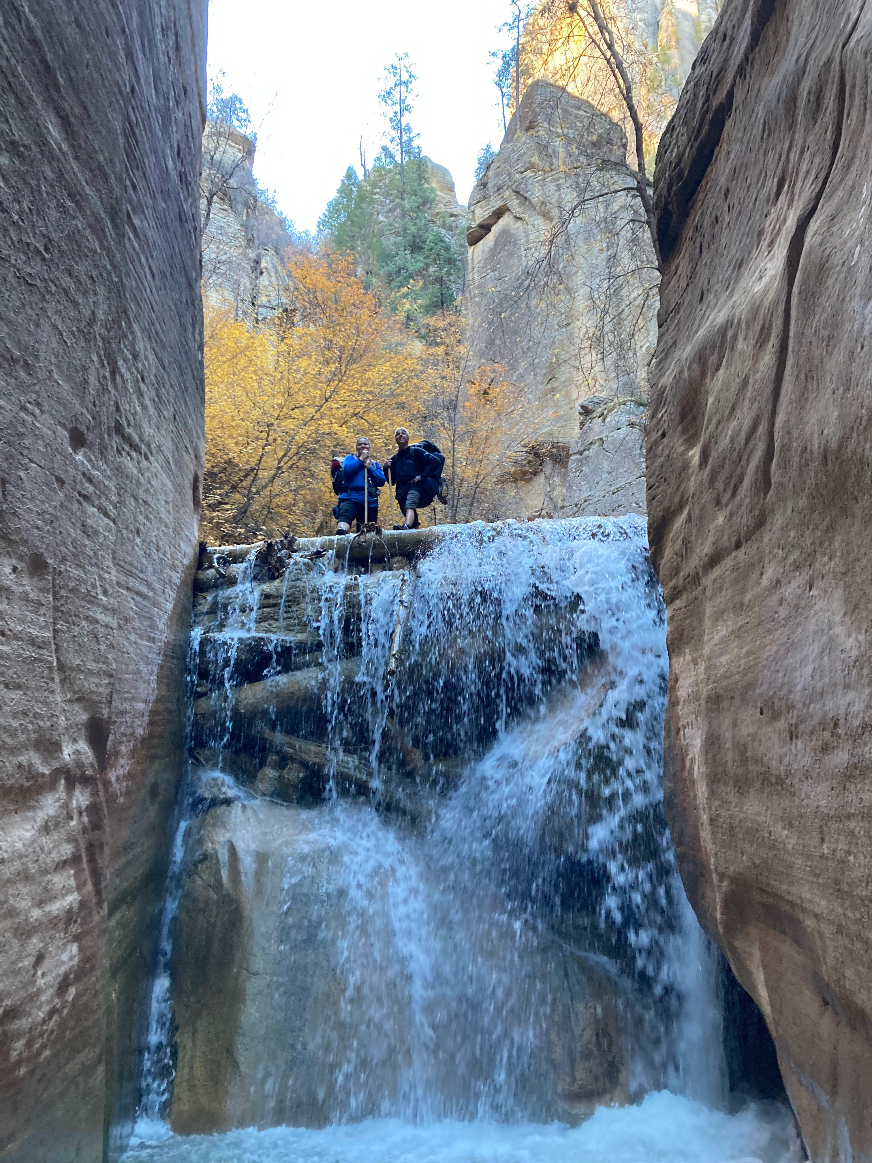 Overnight hike with Ken and Scotty. Very hard and incredibly beautiful! We rented dry suits, neoprene socks, and boots for hiking in water. We stayed at a site along the trail where we set up hammocks (it was so cold!) On day 2, Ken and Scotty took my pack off and on since I was slow and my knee was really hurting me.
