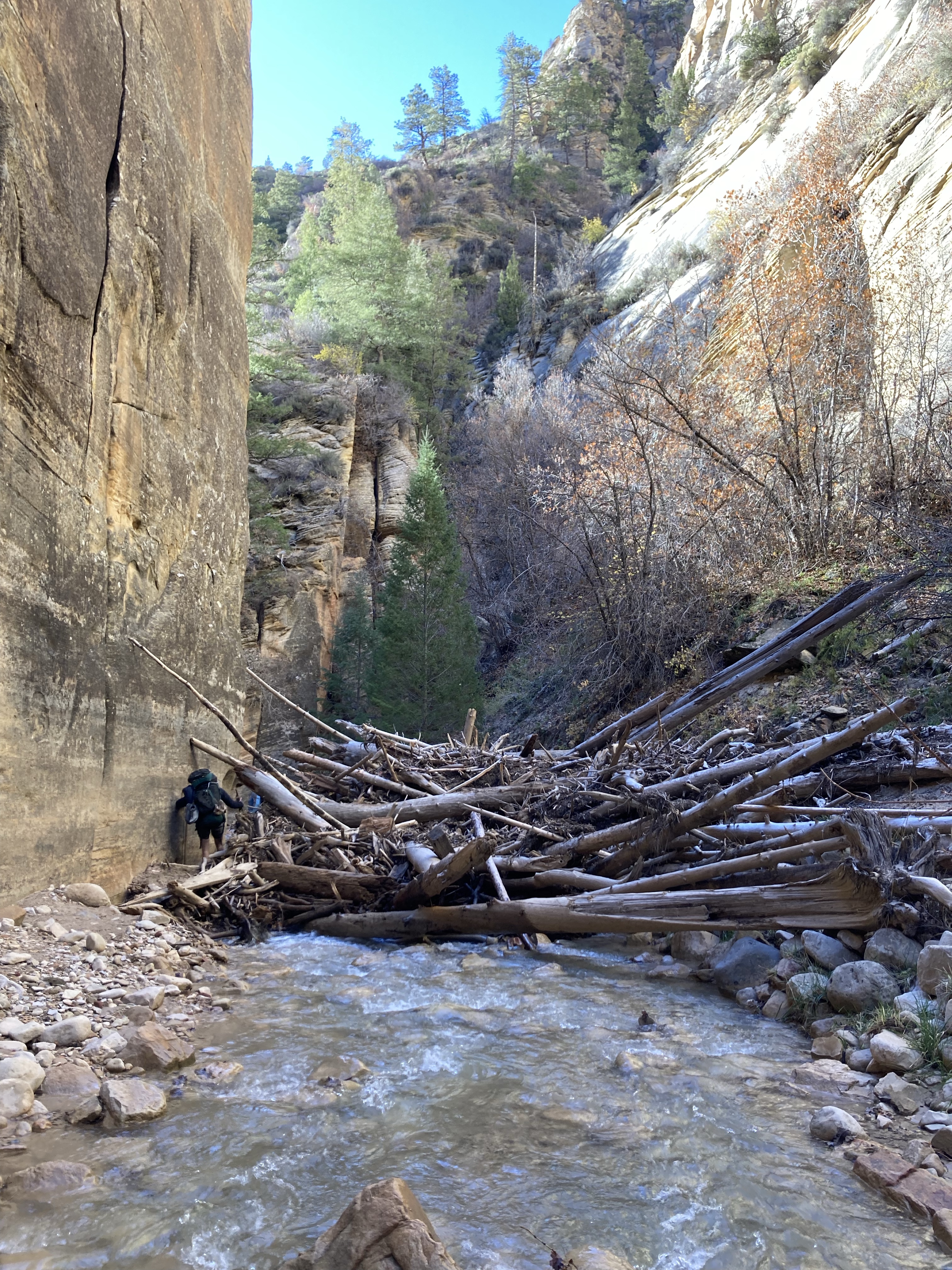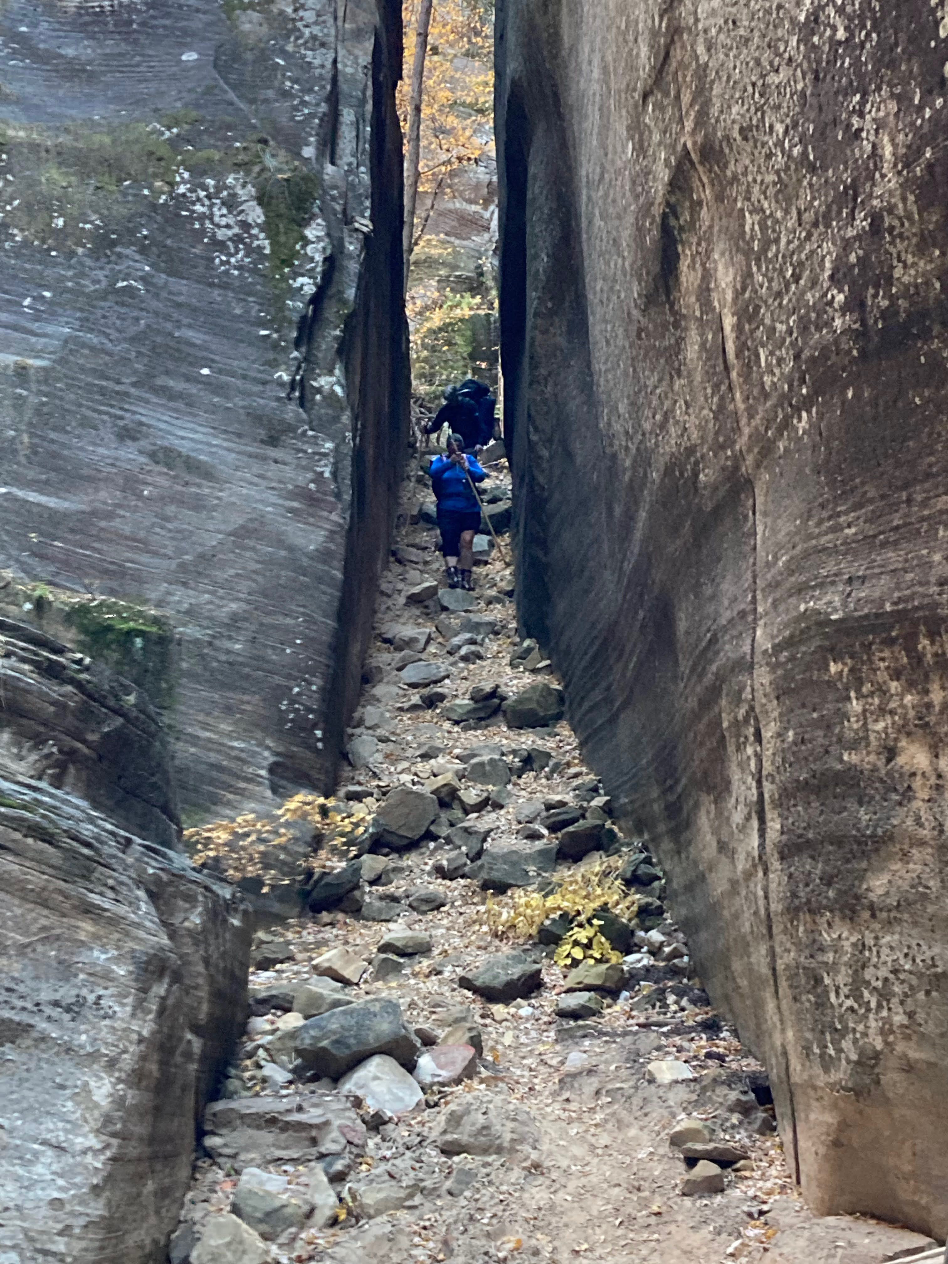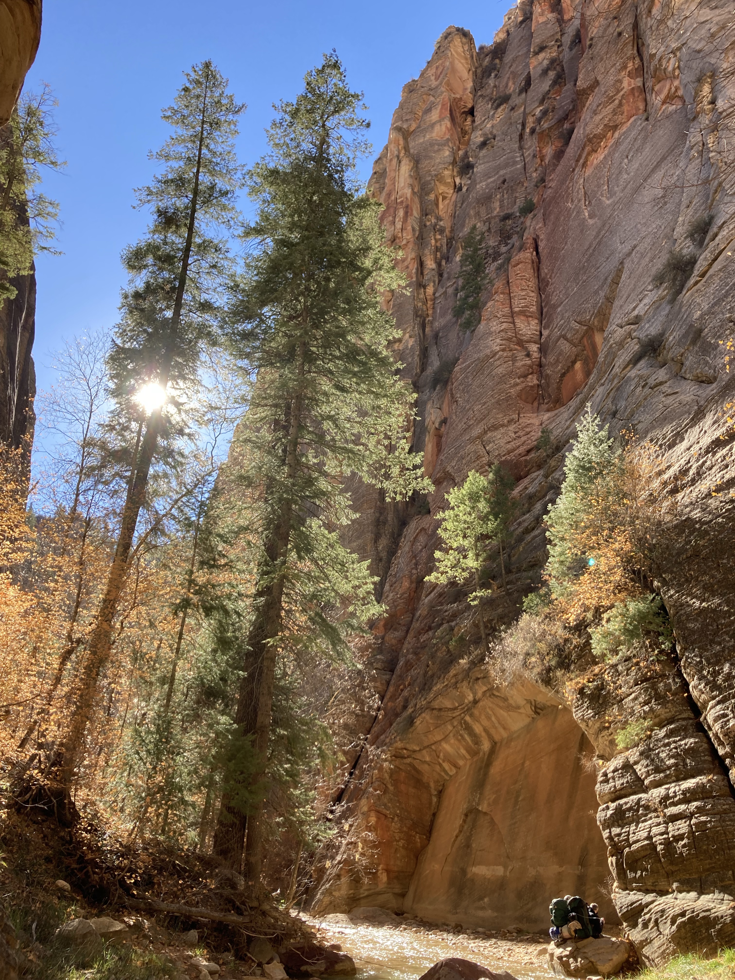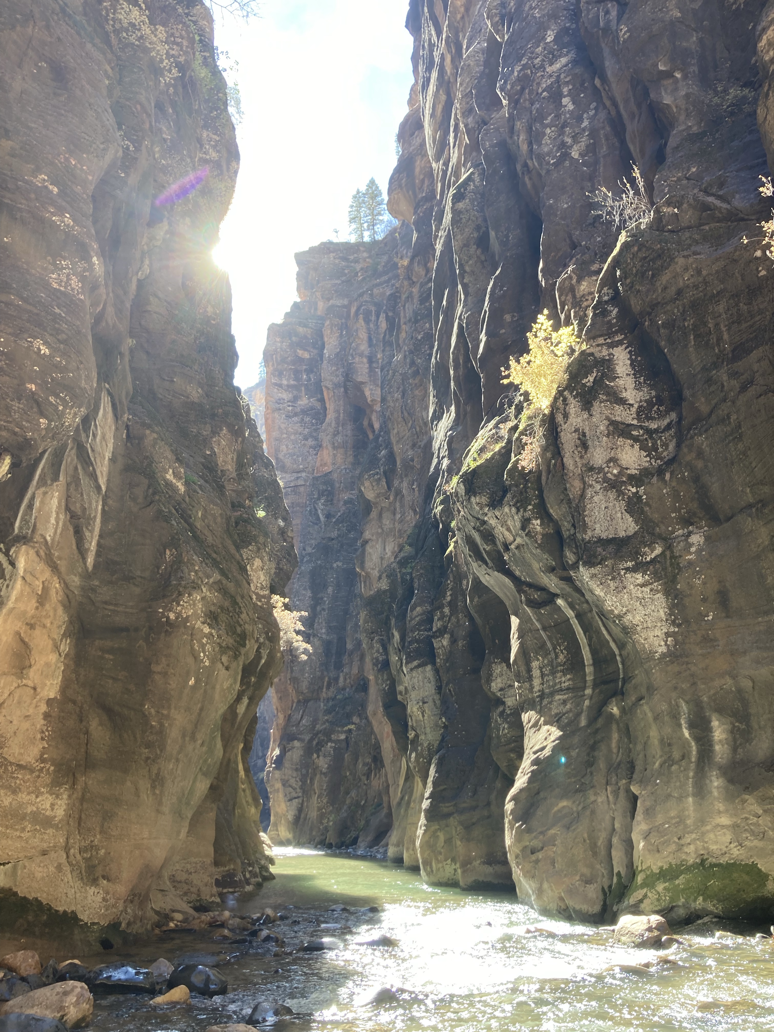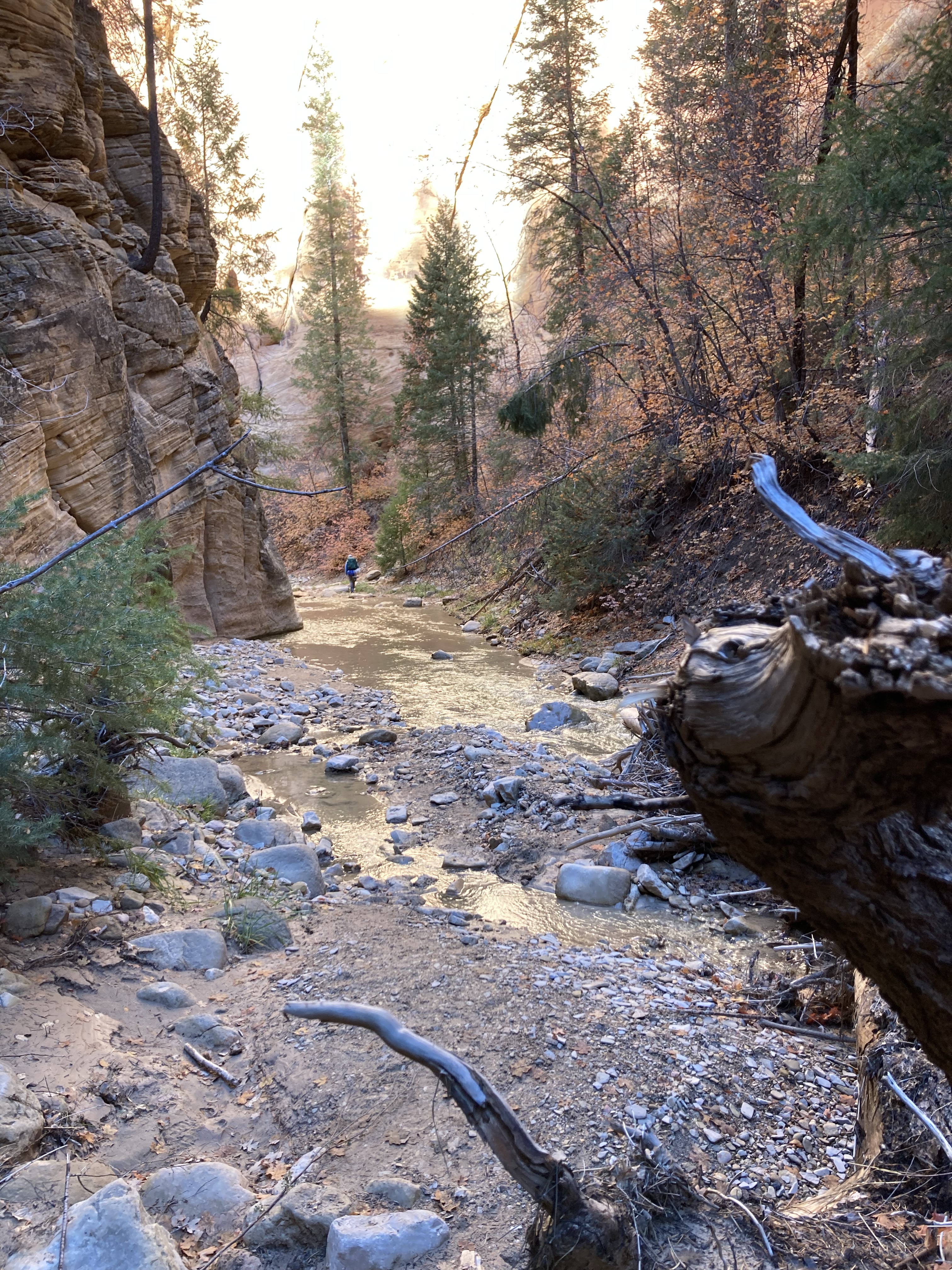 Overnight hike with Ken and Scotty. Very hard and incredibly beautiful! We rented dry suits, neoprene socks, and boots for hiking in water. We stayed at a site along the trail where we set up hammocks (it was so cold!) On day 2, Ken and Scotty took my pack off and on since I was slow and my knee was really hurting me.