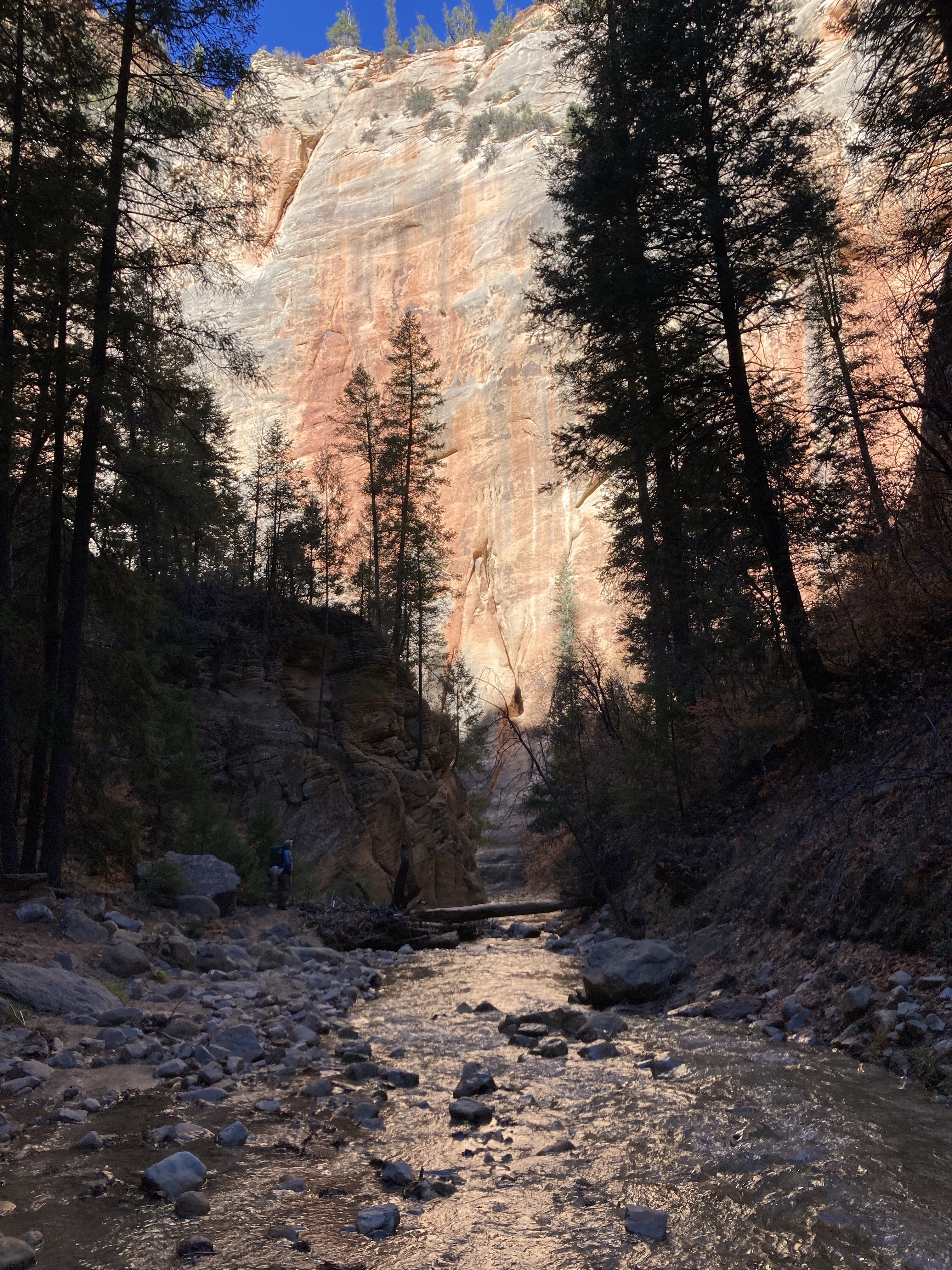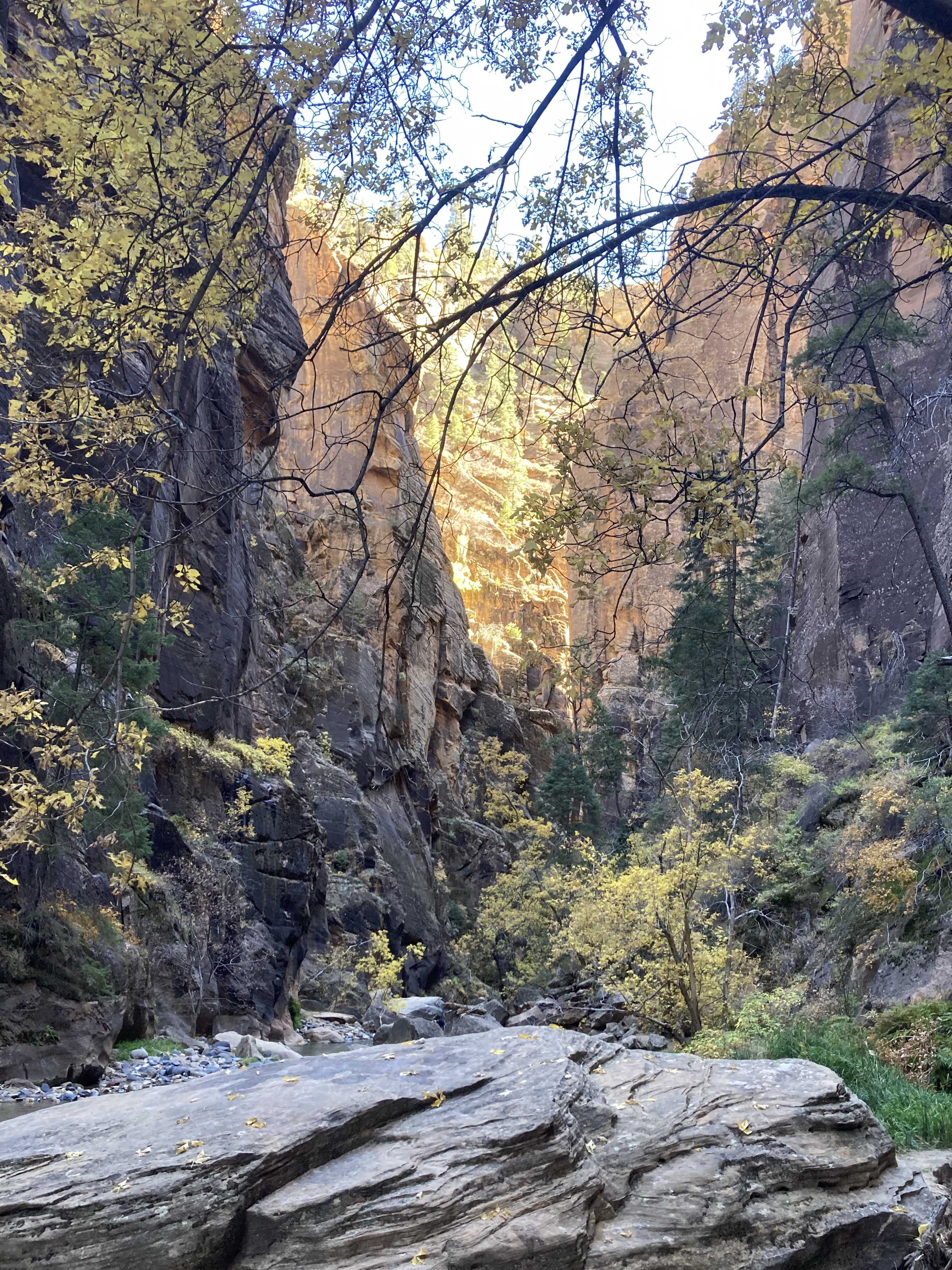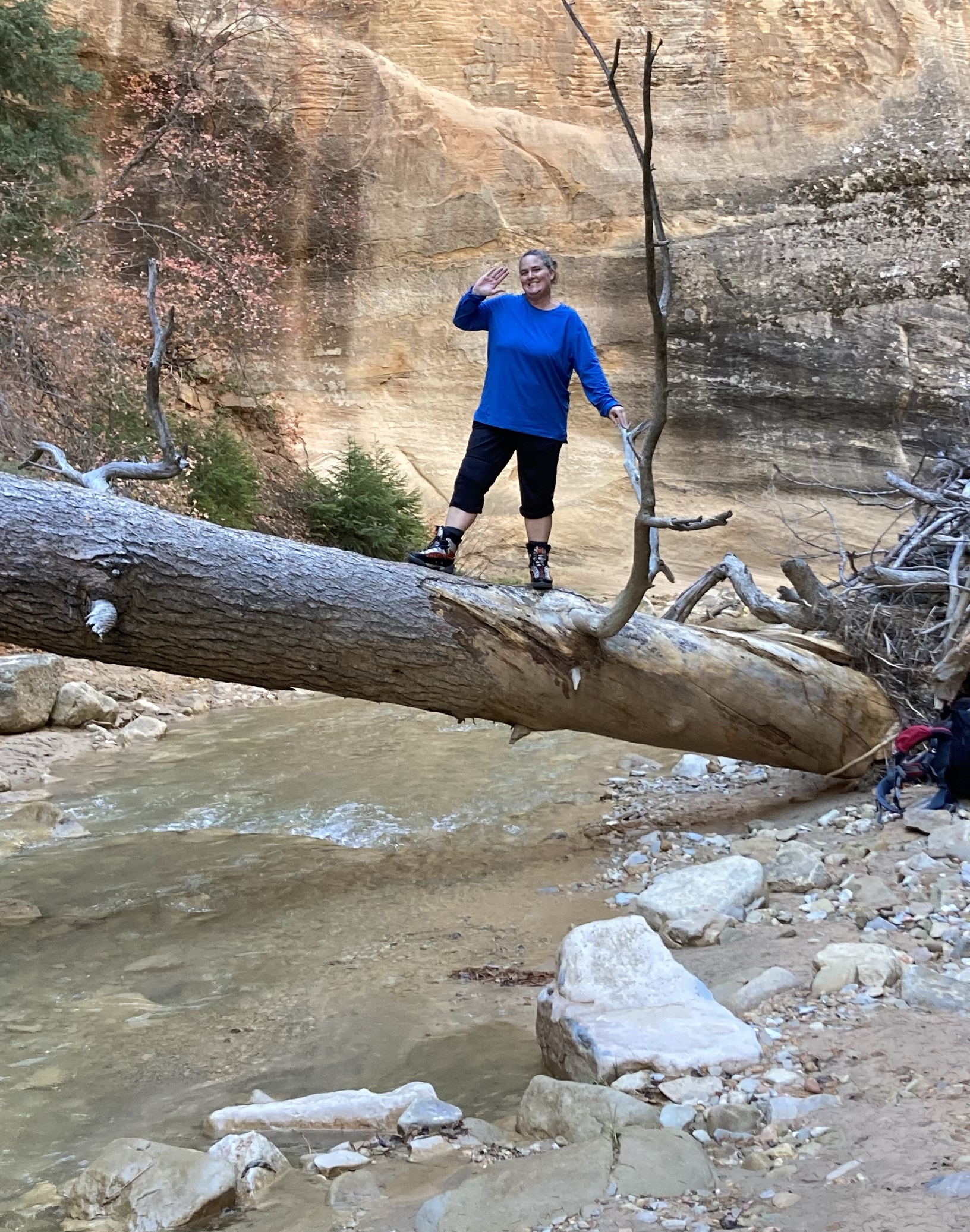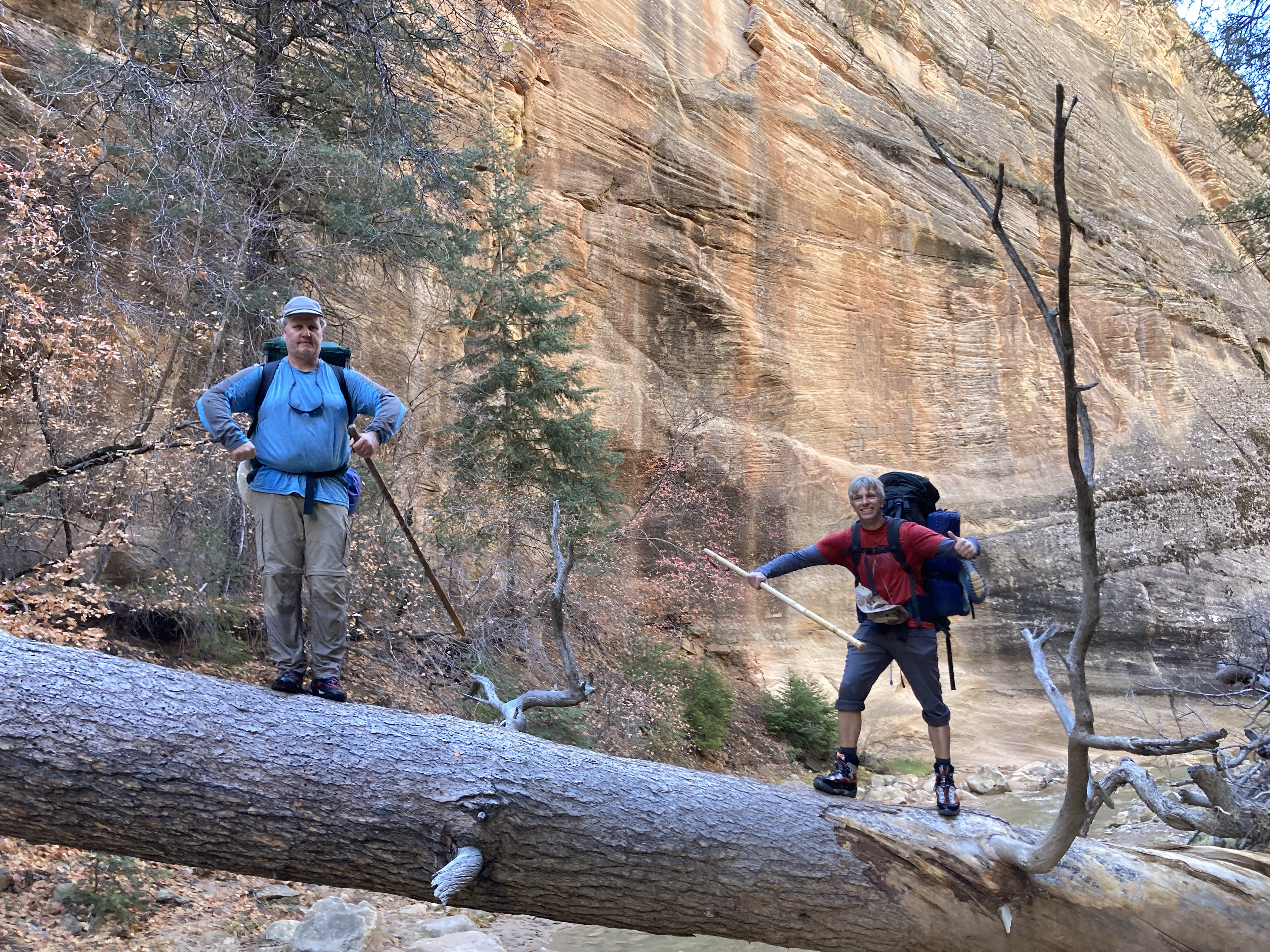 Overnight hike with Ken and Scotty. Very hard and incredibly beautiful! We rented dry suits, neoprene socks, and boots for hiking in water. We stayed at a site along the trail where we set up hammocks (it was so cold!) On day 2, Ken and Scotty took my pack off and on since I was slow and my knee was really hurting me.