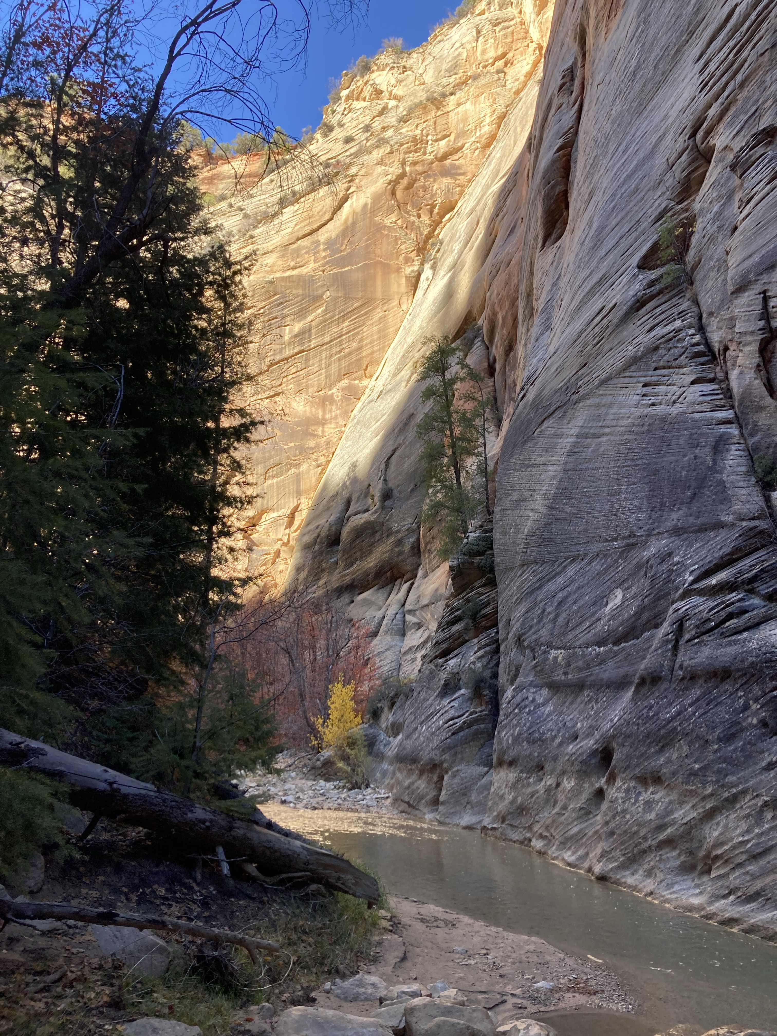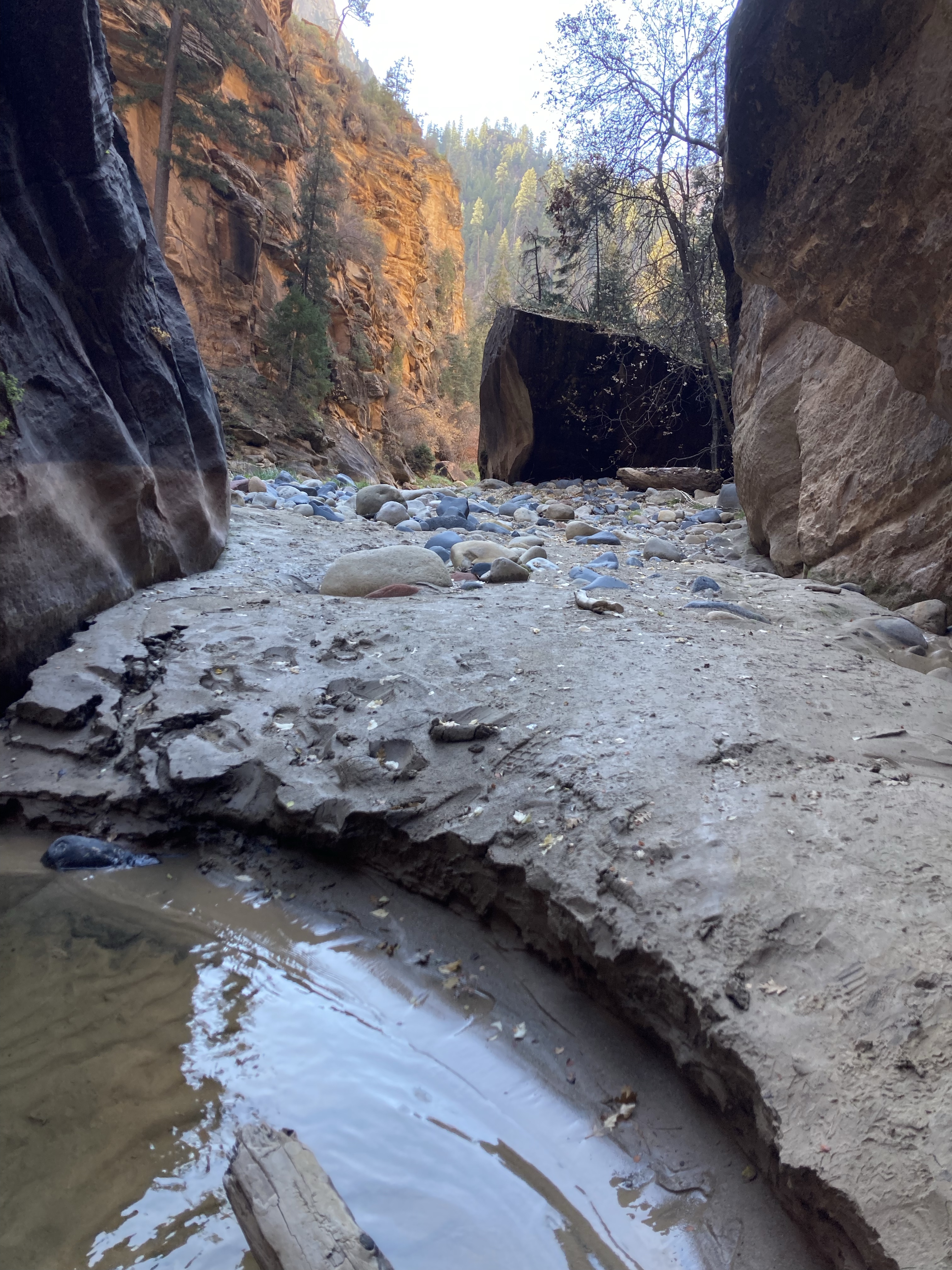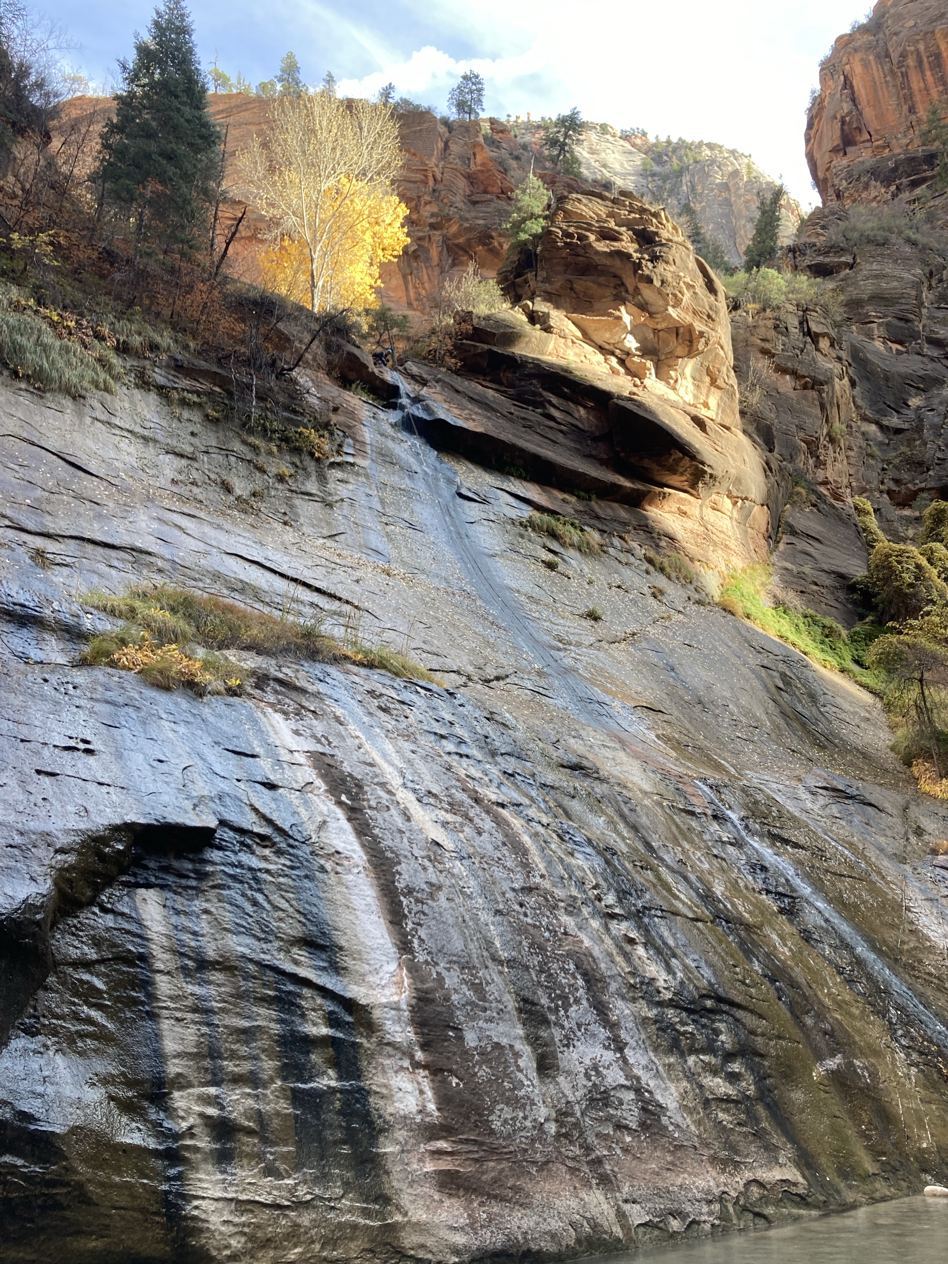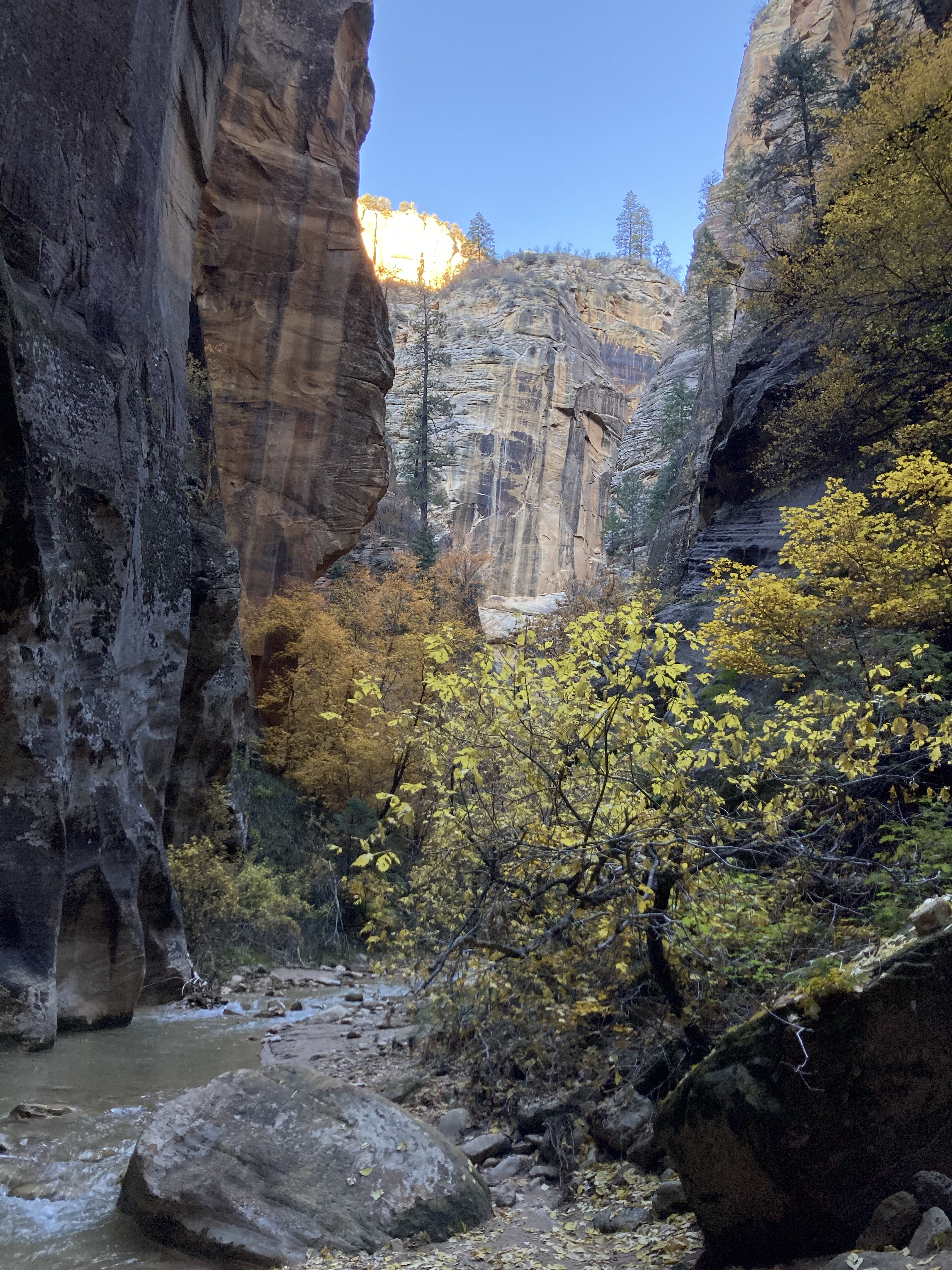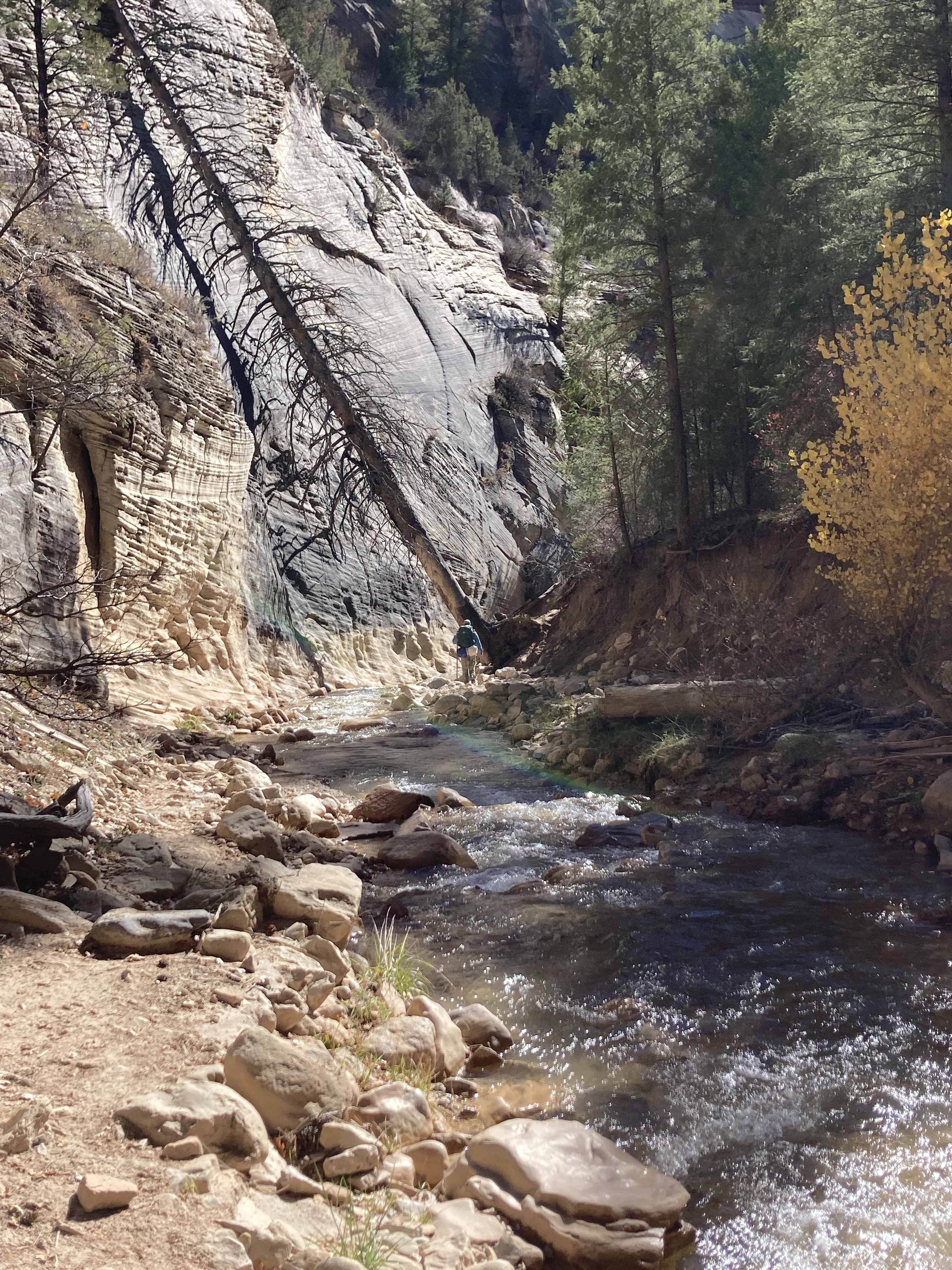 Overnight hike with Ken and Scotty. Very hard and incredibly beautiful! We rented dry suits, neoprene socks, and boots for hiking in water. We stayed at a site along the trail where we set up hammocks (it was so cold!) On day 2, Ken and Scotty took my pack off and on since I was slow and my knee was really hurting me.