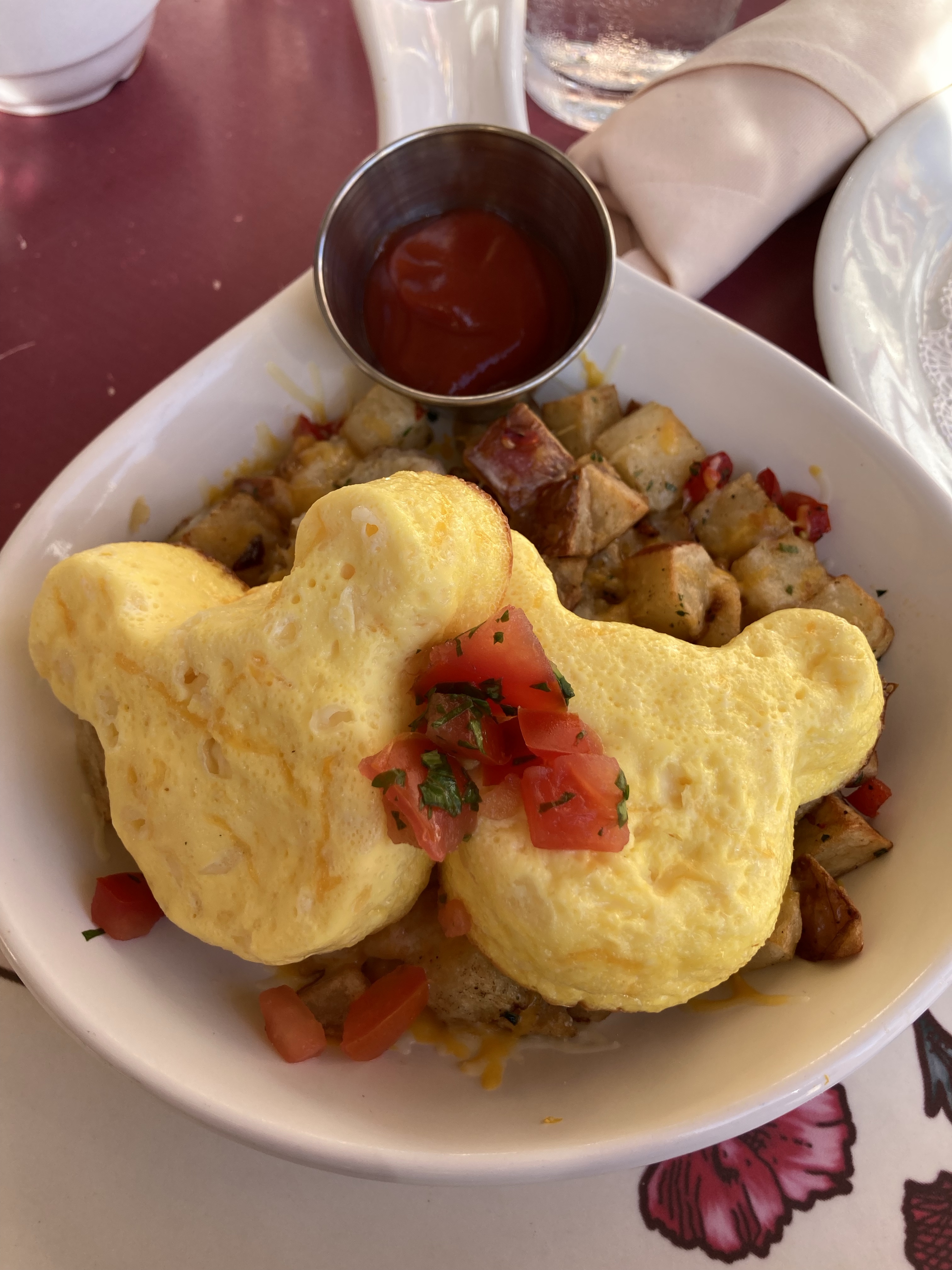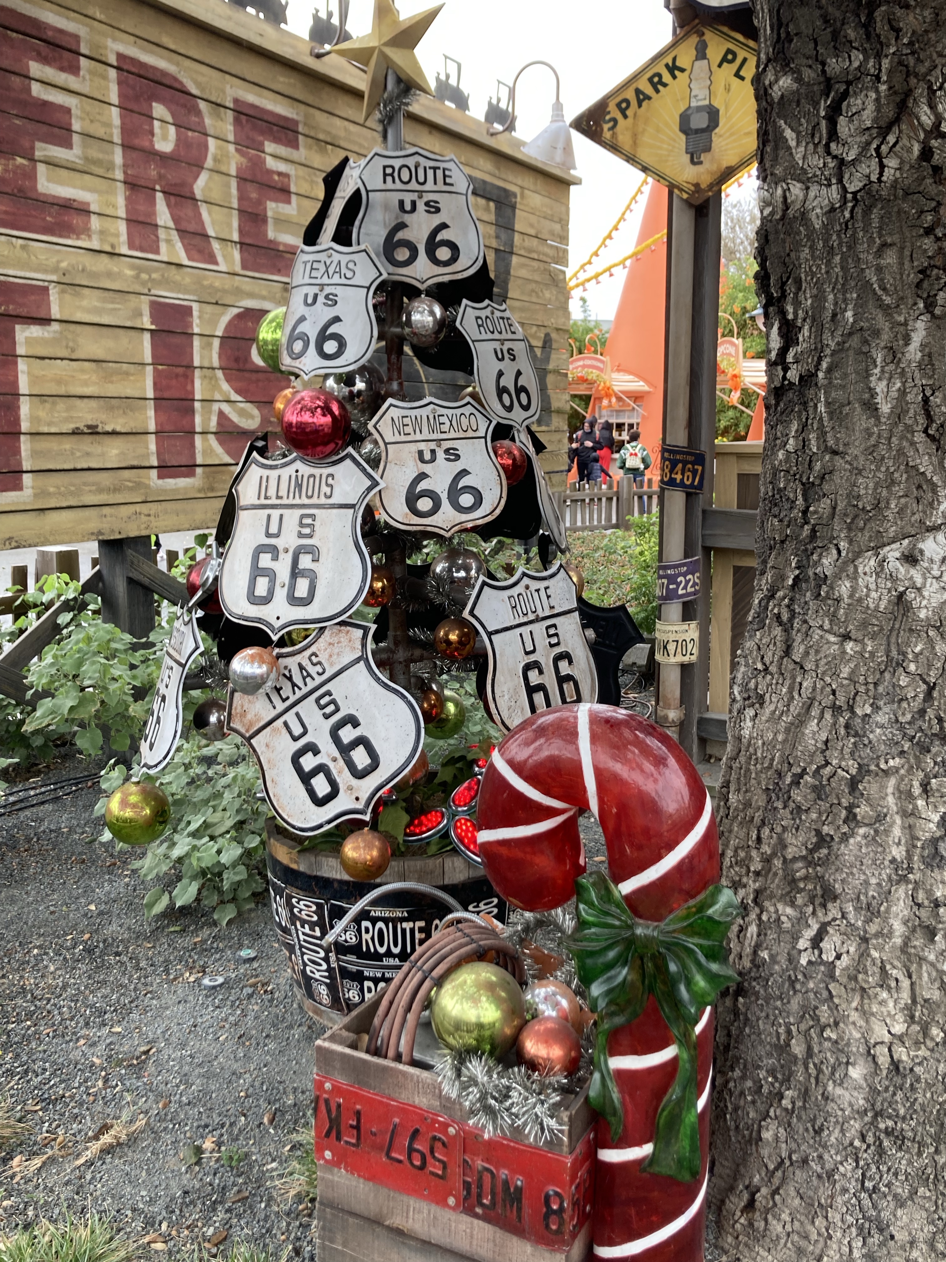 Accident on I-15. Sat in the stopped traffic for quite awhile, then flipped around and went 30 miles back to Route 66. Stopped at Elmers bottle tree ranch and experienced a cool thunder storm. Beautiful sky coming into Anaheim. 🙂Had to scrap our plan to go to the beach. Went to downtown Disney instead. Shopped a bit and ate at the Jazz Kitchen. The chocolate sauce from the beignets made a little Mickey 🙂