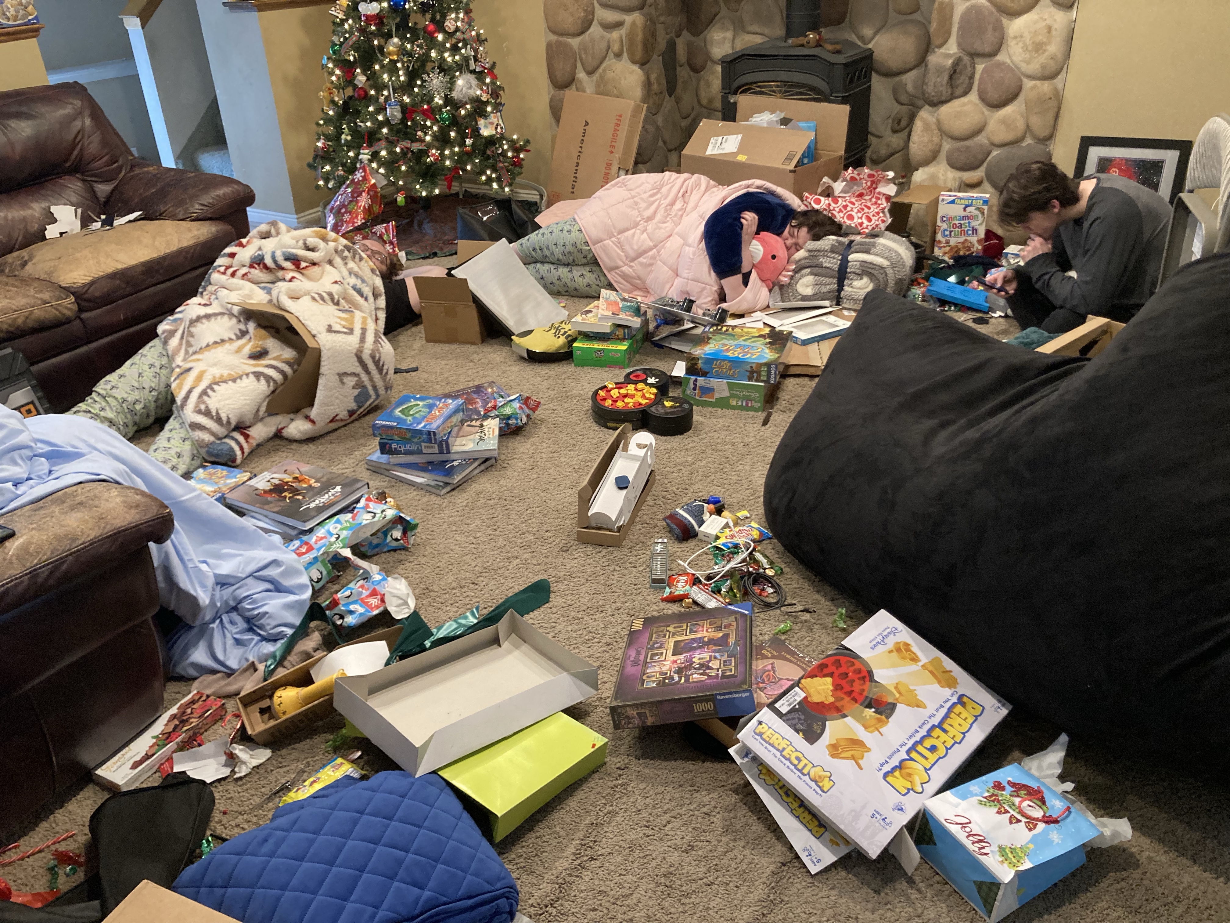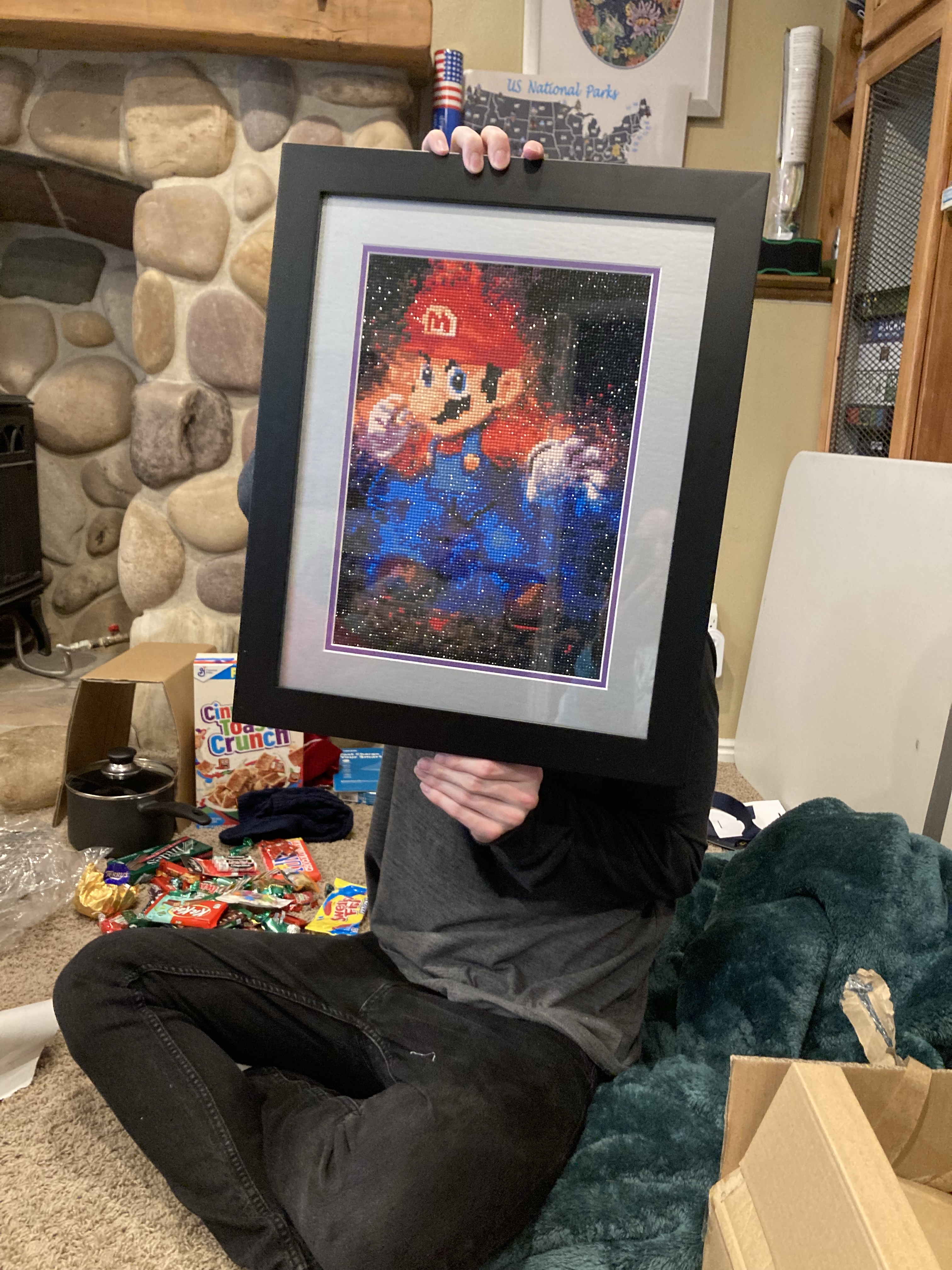 Went to the sing-along alone and masked but it was still awesome!Anne got Covid so everyone tested before coming and wore masks. And we didn’t sing 😦I bought everyone socks and we played Wasington 🙂Matching PJs!It was supposed to snow but it was a beautiful not too cold dayTeo loved the blanket!Diamond art for everyone 🙂Aftermath