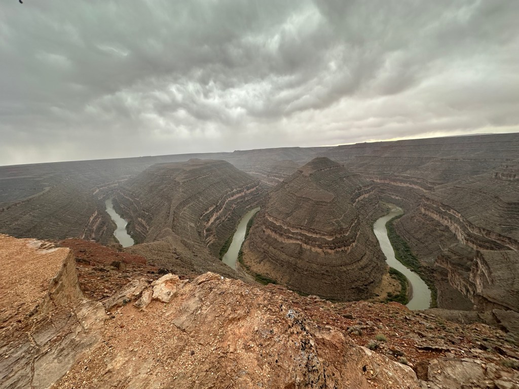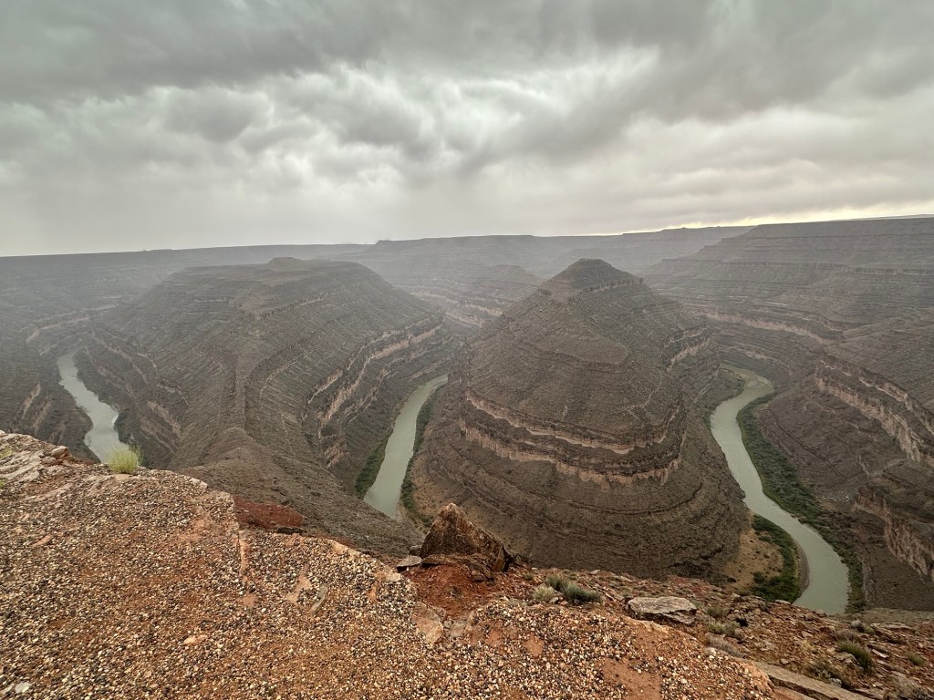 When we get back down to the tramway parking area where we left Dave’s bike, they were closed and the parking lot was blocked off. So we ended up pushing Dave’s bike down a little hillside in order to free it! And it stayed raining so he rode in stormy weather most of the way back to his place. It was a crazy day!